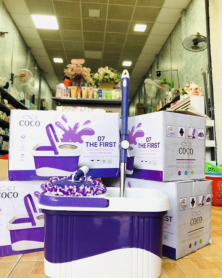 - Sản phẩm Bộ lau nhà xoay 360 độ bao gồm một thùng giặt có chứa lồng vắt và 1 cây lau. Với điểm nhấn là bộ tạo chuyển động 360 độ siêu bền, bộ lau nhà Coco sẽ dễ dàng lau sạch bụi bẩn trong mọi ngóc ngách và cả những nơi khó lau dọn như gầm giường, gầm bàn, tủ, ghế… giữ cho ngôi nhà của bạn luôn sạch sẽ và thoáng mát.