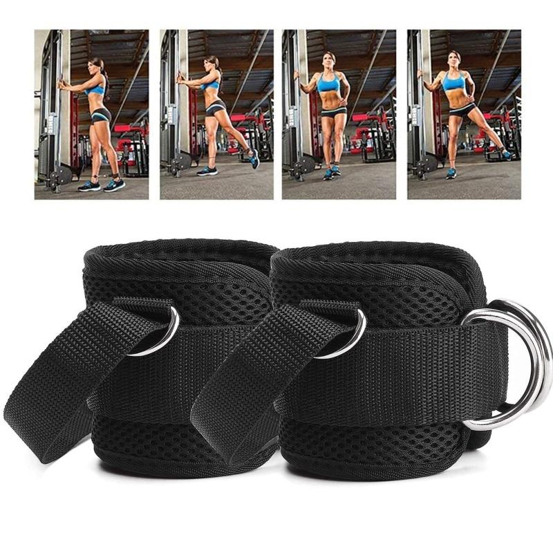 Dây đeo mắt cá chân tập thể dục có thể được sử dụng với hầu hết các hệ thống cáp tiêu chuẩn, huấn luyện viên chức năng và sức đề kháng, và các thiết bị tương tự để nối chân, uốn xoăn chân, bắt cóc hông và tập luyện mông.