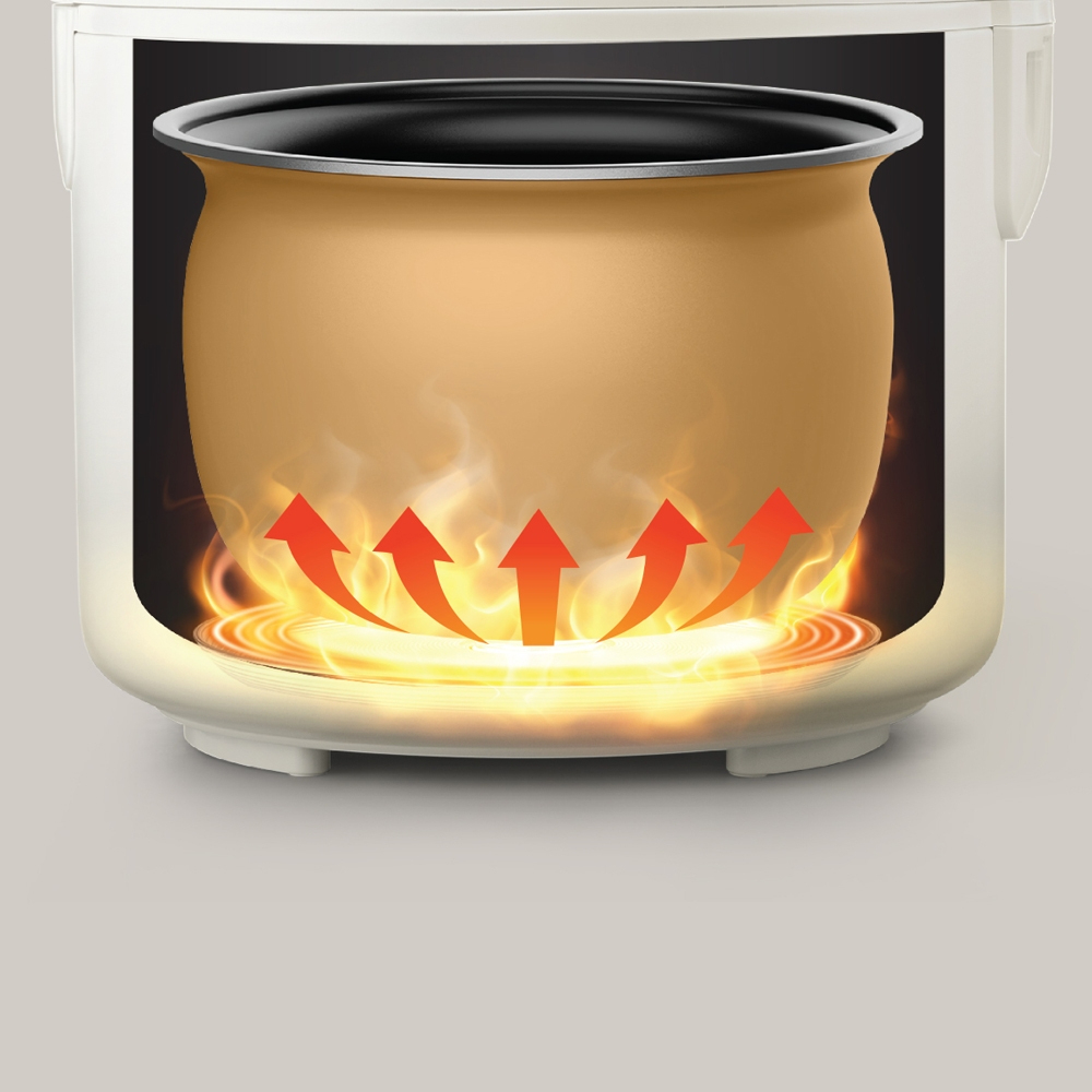 LÒNG NỒI HÌNH CẦU DÀY DẶN: Truyền nhiệt đều, nấu cơm tơi xốp và ngon hơn