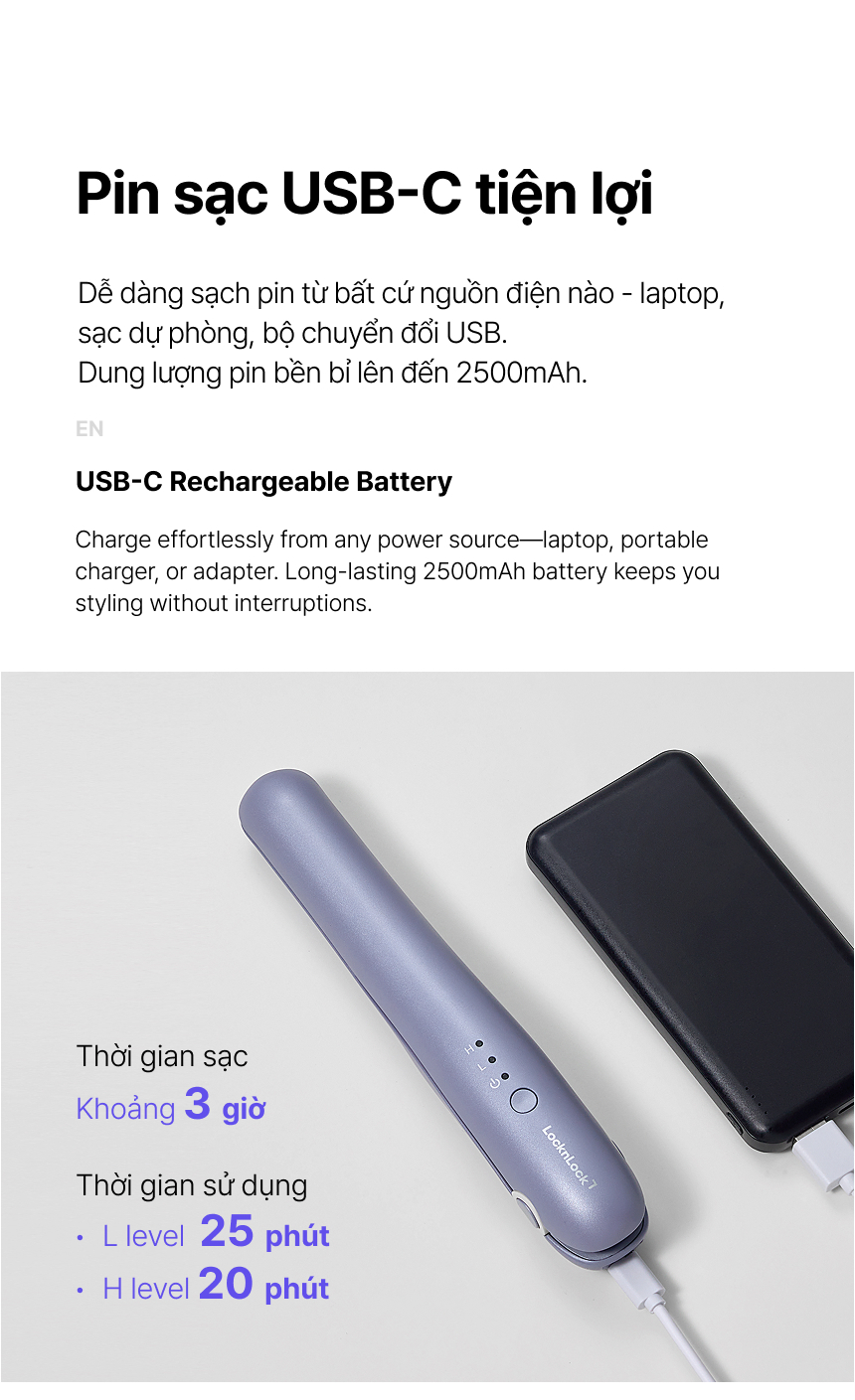Máy Duỗi Tóc Không Dây LocknLock ENA224PUP 15W, Hàng Chính Hãng, Tấm Nhiệt Phủ Ceramic - JoyMall