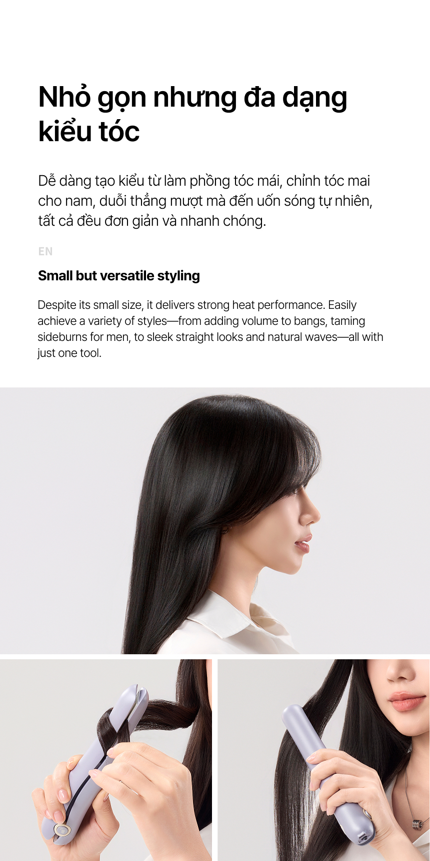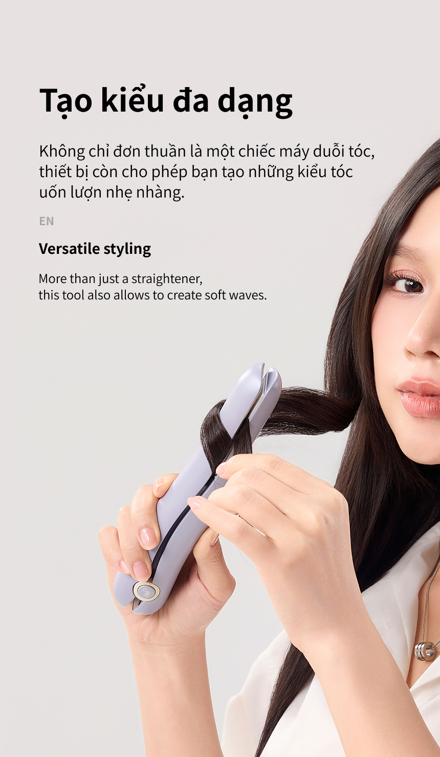 - TẠO KIỂU ĐA DẠNG: Không chỉ đơn thuần là một chiếc máy duỗi tóc, thiết bị còn cho phép bạn tạo những kiểu tóc uốn lượn nhẹ nhàng.