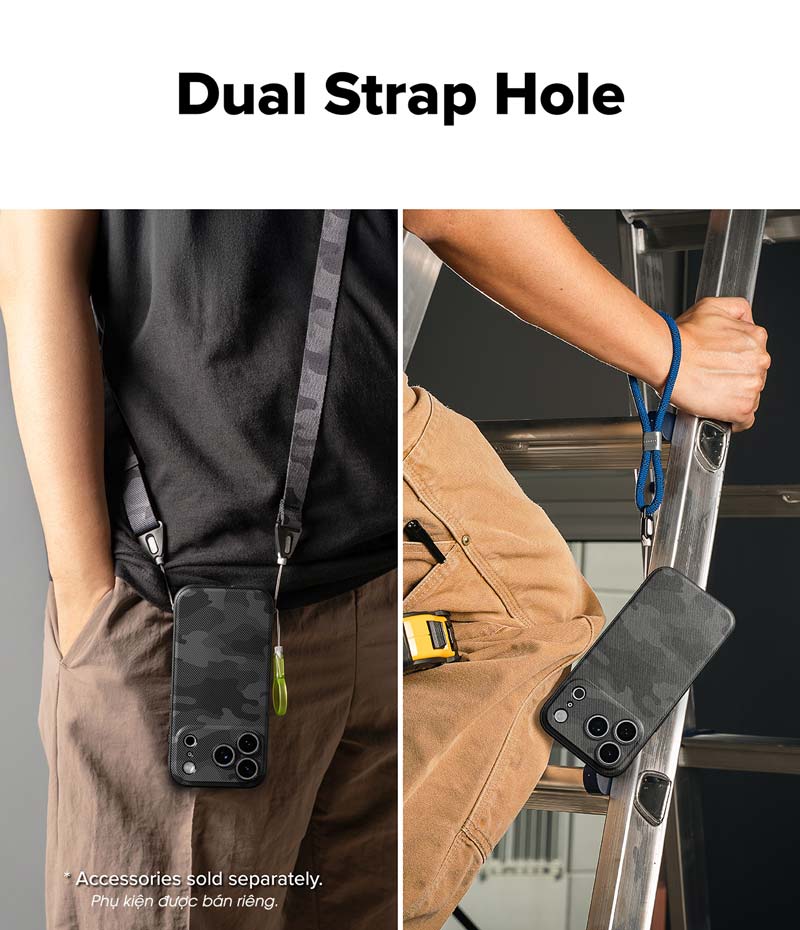 - Kích thước lỗ xỏ dây đeo cải tiến cho phép treo (móc) được 2 phụ kiện cùng lúc. Lưu ý: dây đeo được bán riêng. Hình ảnh chỉ minh họa cách sử dụng sản phẩm.