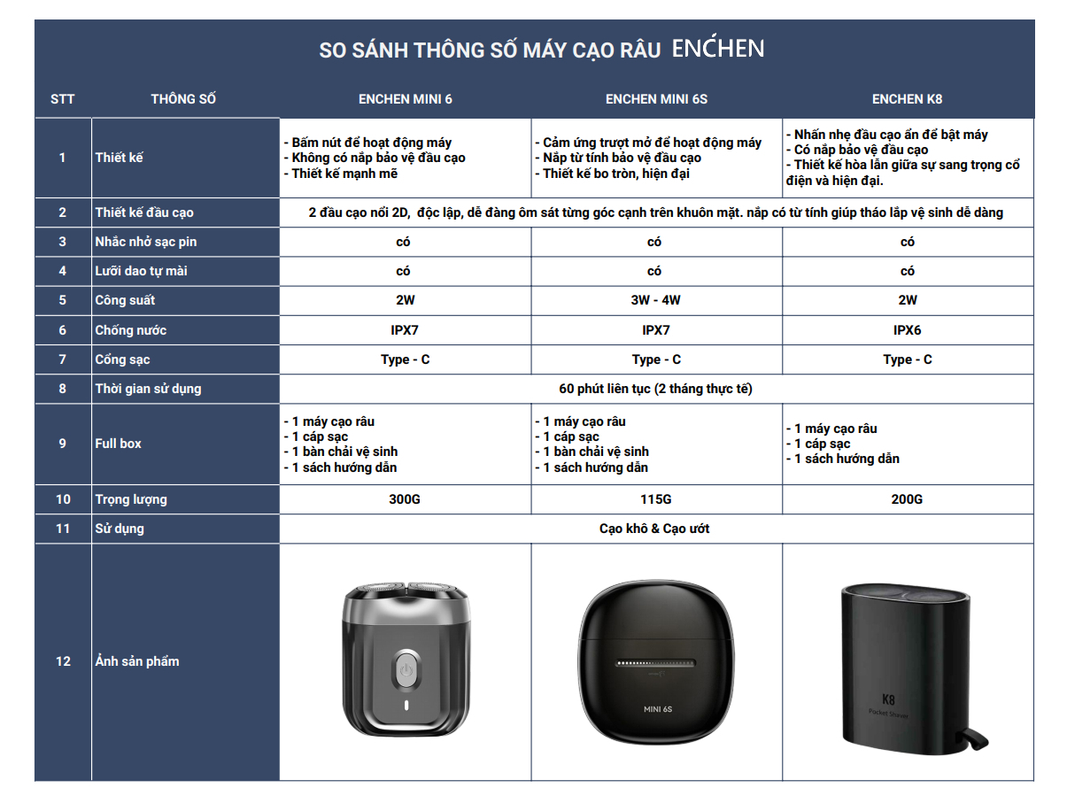 - Để có một vẻ ngoài sang trọng, lịch lãm, đẹp trai cánh đàn ông thường xuyên phải cạo râu mỗi ngày tuy nhiên việc sử dụng những phương pháp cạo râu truyền thống khá tốn thời gian và công sức. Với máy cạo râu Máy Cạo Râu Enchen K8 sẽ giúp bạn thay đổi bề ngoài một cách nhanh chóng.