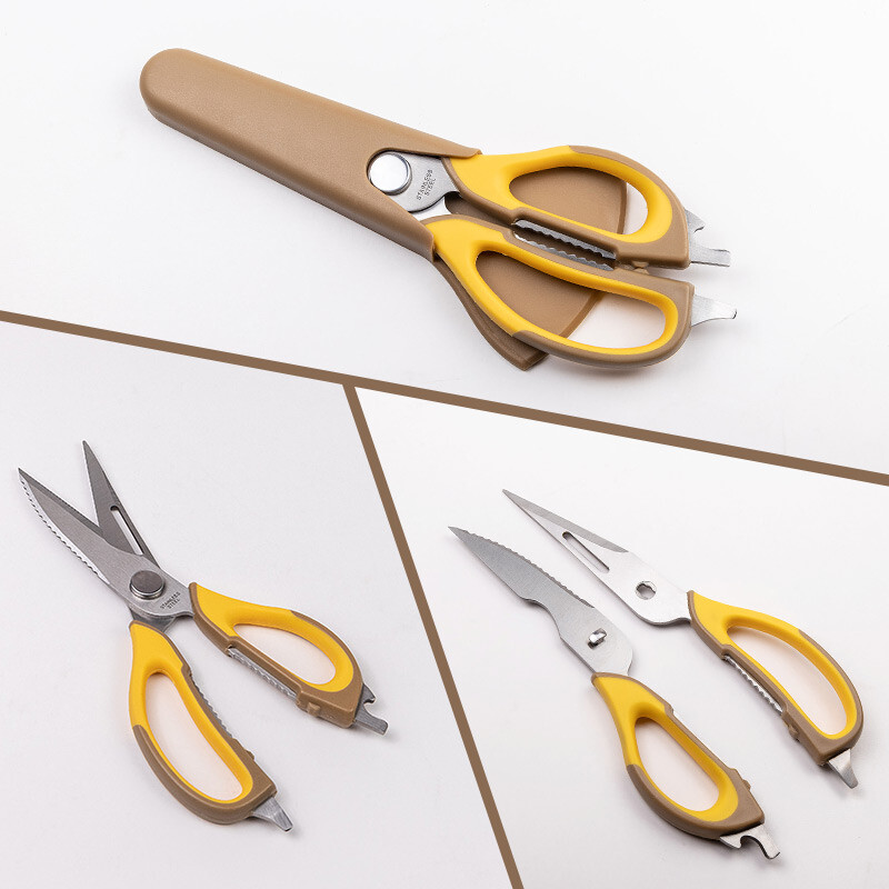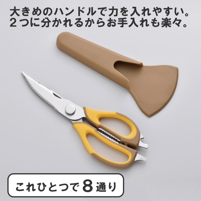 | ● Với 8 chức năng để sử dụng bao gồm: ① Kéo ② Dao ③ Lột ④ Cân ⑤ Lọc xương ⑥ Tách vỏ ⑦ Mở hộp ⑧ Dụng cụ mở chai ● Dễ dàng tác động lực với tay cầm lớn, có thể tháo ra làm đôi ở khớp nối vì vậy có thể dễ dàng rửa sạch sau mỗi lần sử dụng |