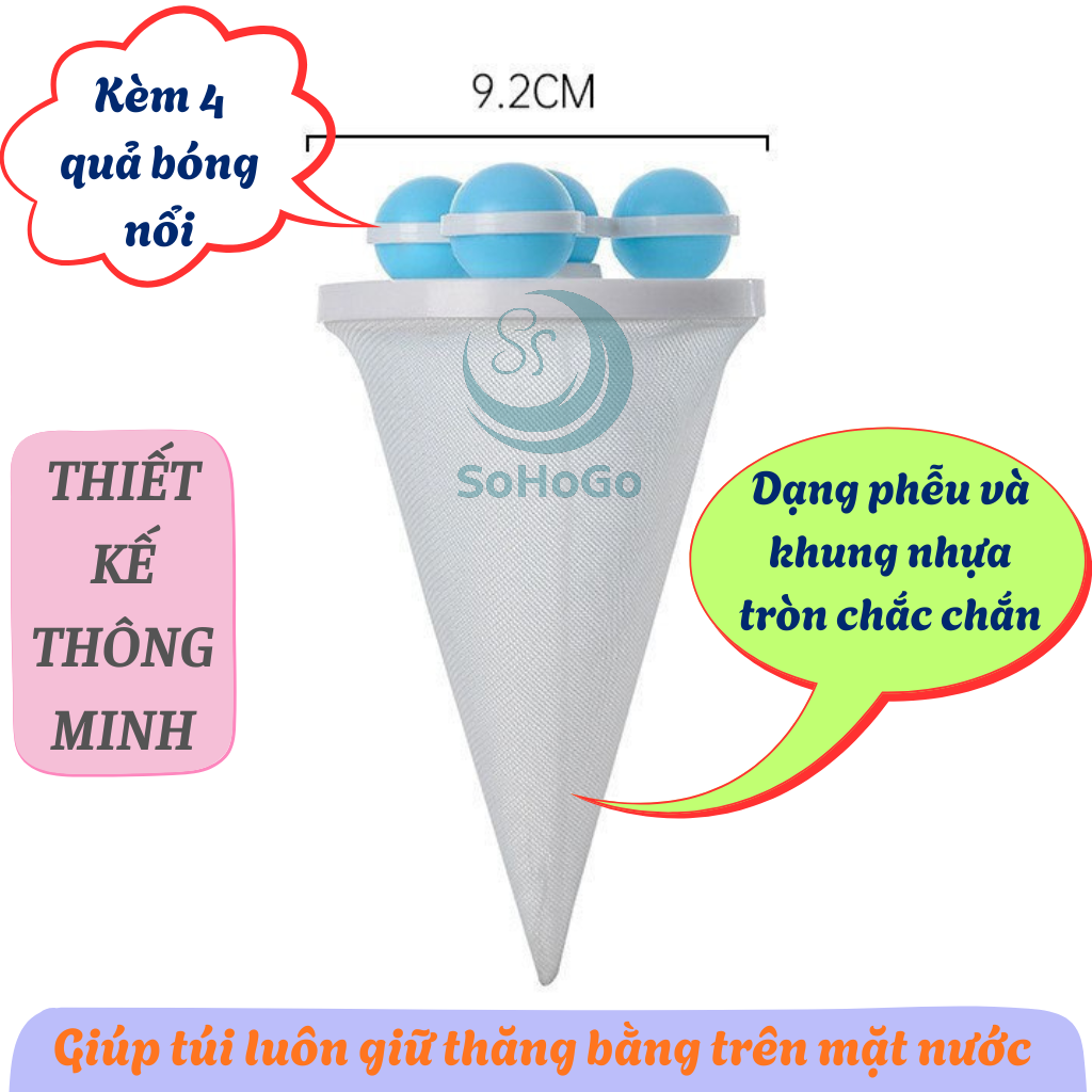 Bộ 2 Túi lọc rác máy giặt hình phễu kèm quả bóng -Lưới lọc rác – lông – sợi vải máy giặt -Dụng cụ lọc cặn bẩn quần áo khi giặt
