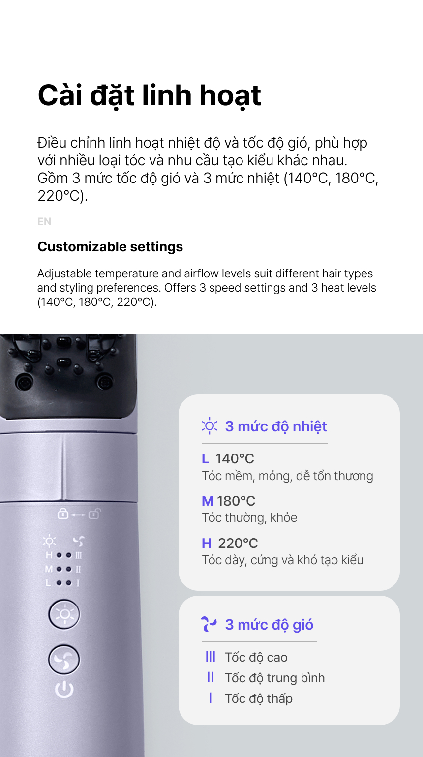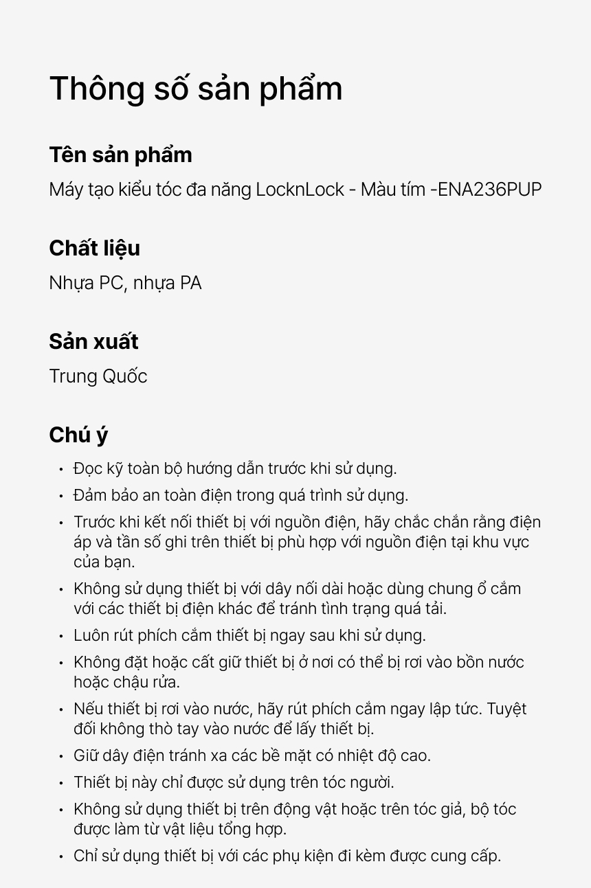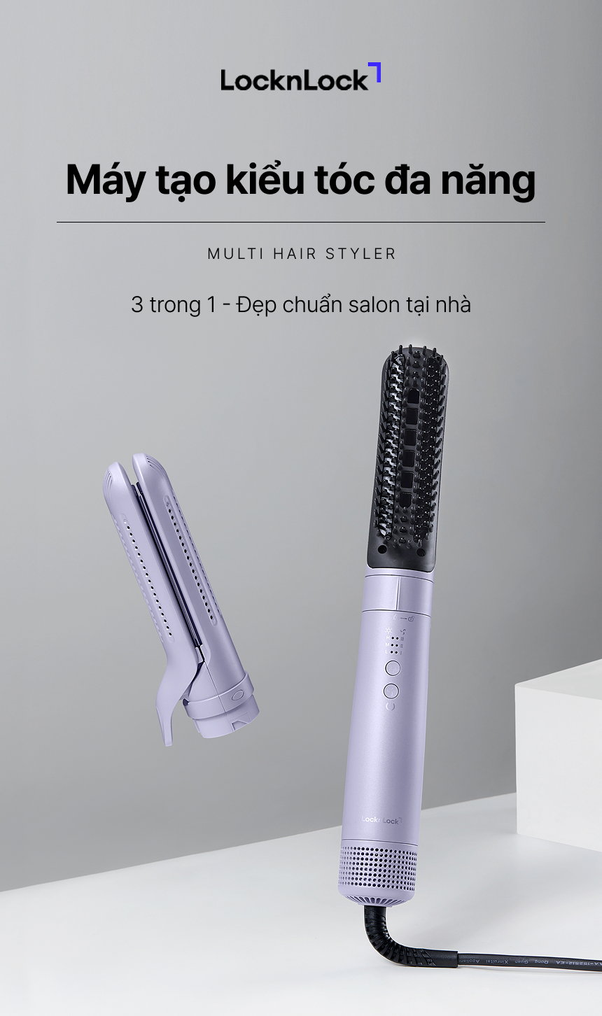 Nhập mã TECKITKBD FREESHIP 20k cho đơn 0đ tại Tiki.Vn Giới thiệu Máy tạo kiểu tóc đa năng 3 mức nhiệt linh hoạt LocknLock 210W - Màu tím - ENA236PUP - Hàng chính hãng