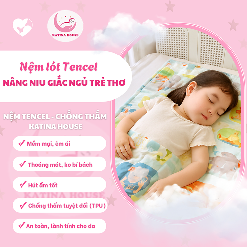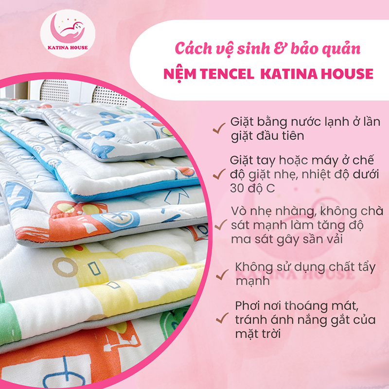 Giới thiệu Nệm cho bé đi học mẫu giáo Katina House, tiểu học 80x140cm, vải Tencel mềm mịn mát