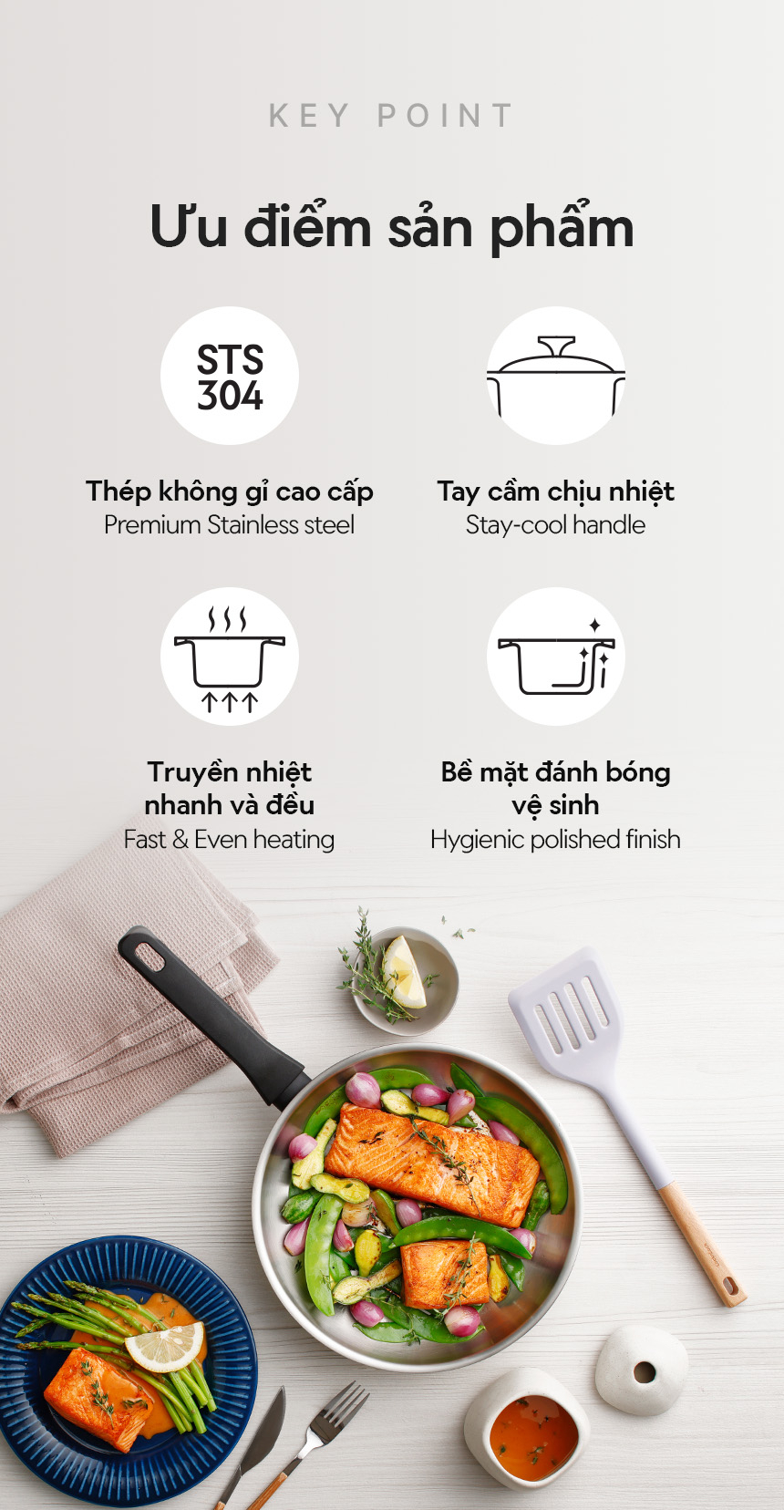 - DỄ NẤU, DỄ VỆ SINH: Bề mặt được đánh bóng kỹ lưỡng nhằm chống lại các vết bẩn và mùi hôi, giữ nguyên hương vị và dễ dàng vệ sinh