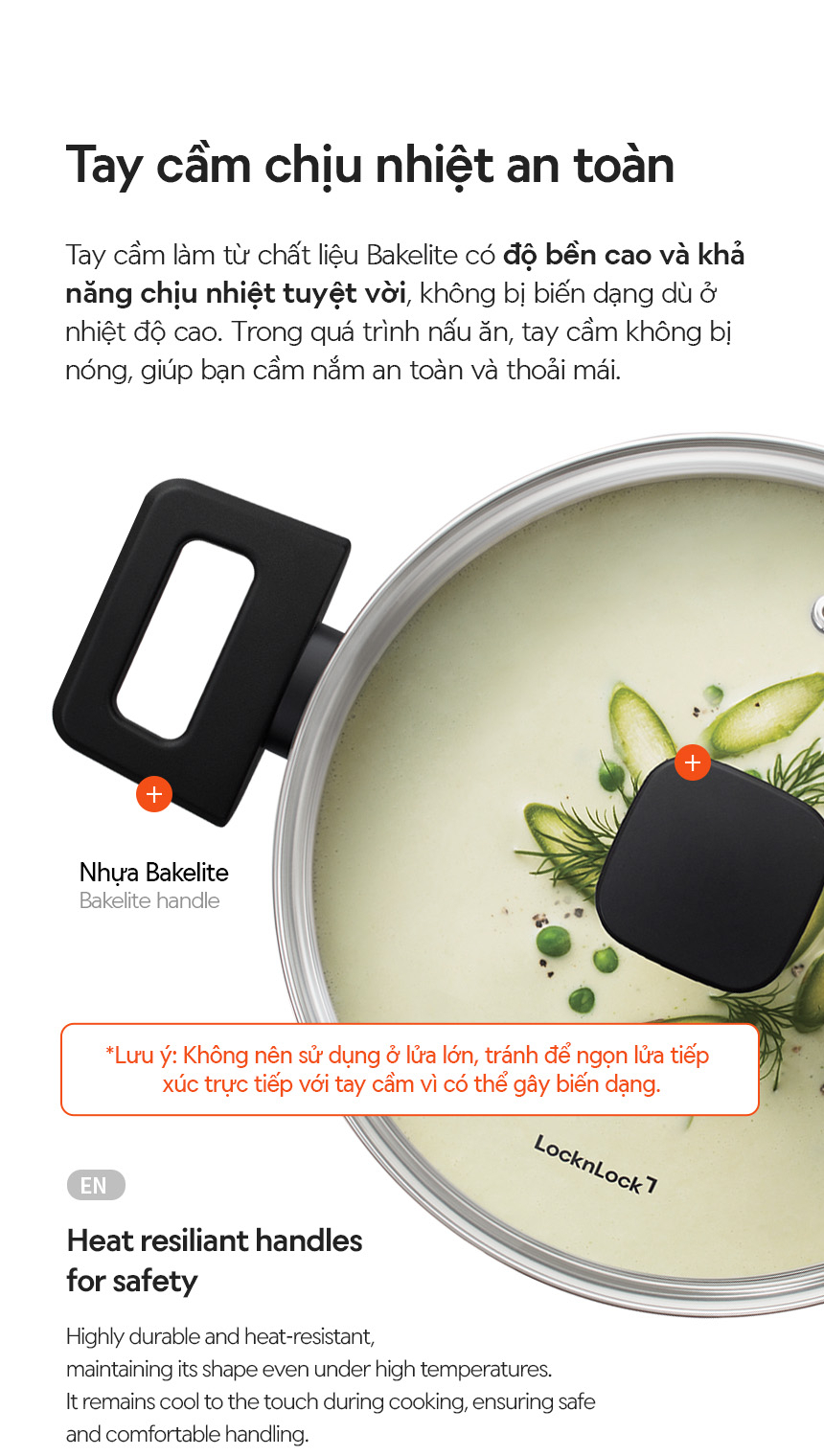 - Xin lưu ý tay cầm có thể nóng lên trong khi nấu.