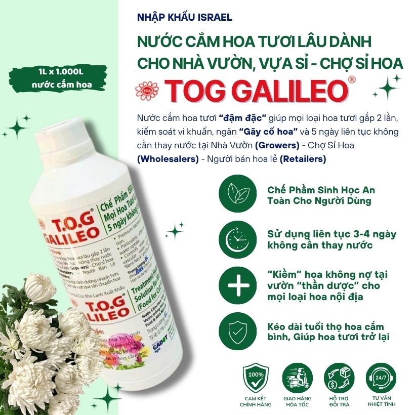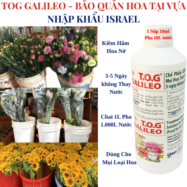 Nước Dưỡng Hoa Tươi Lâu TOG GALILEO nhập khẩu Israel giúp hoa tươi lâu gấp 2 lần và 3-5 ngày không cần thay nước tại nhà vườn, chợ sỉ hoa (1L "đậm đặc" pha 1.000L nước)