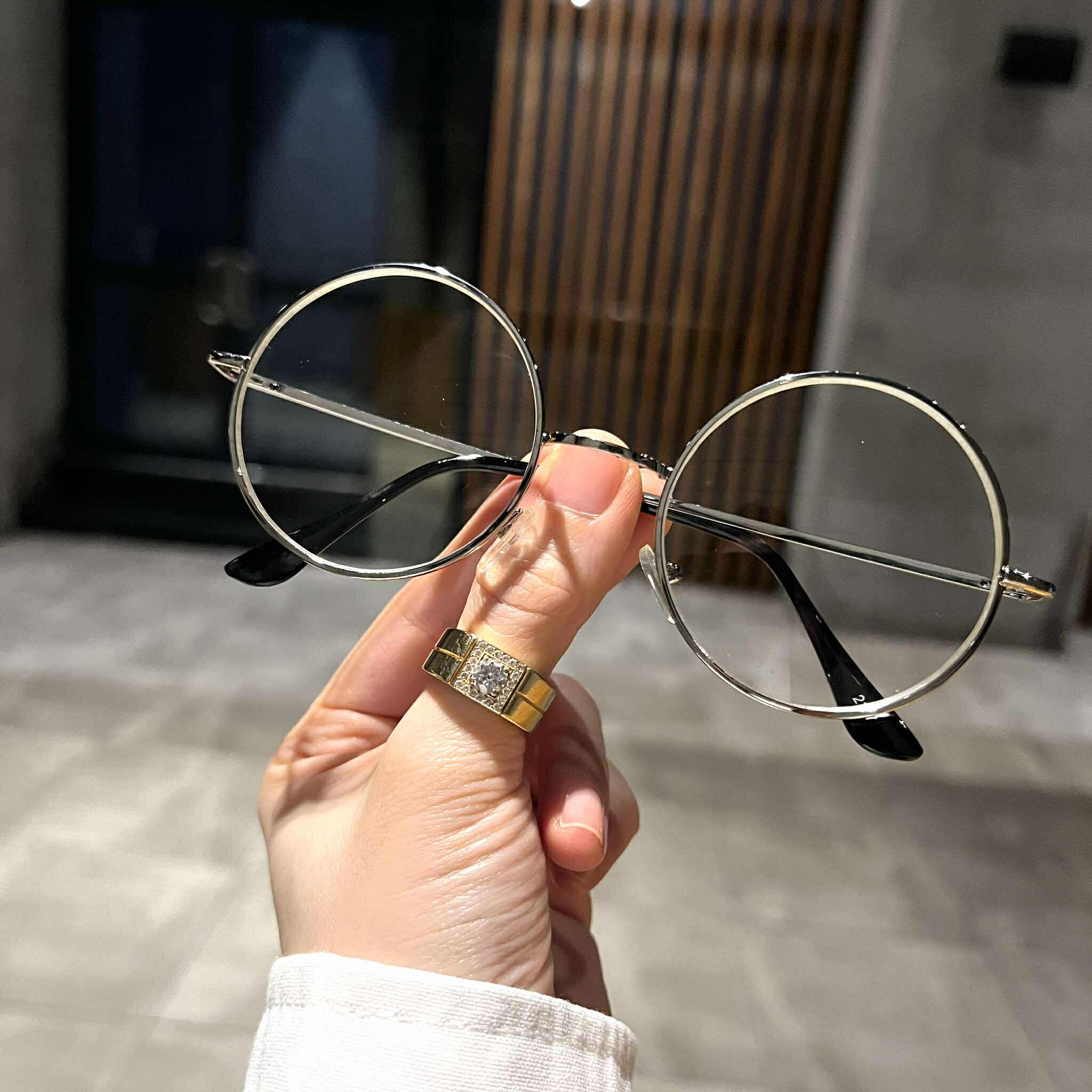 Kính unisex nam nữ Mắt tròn xoe kim loại bản lề nhíp cao cấp