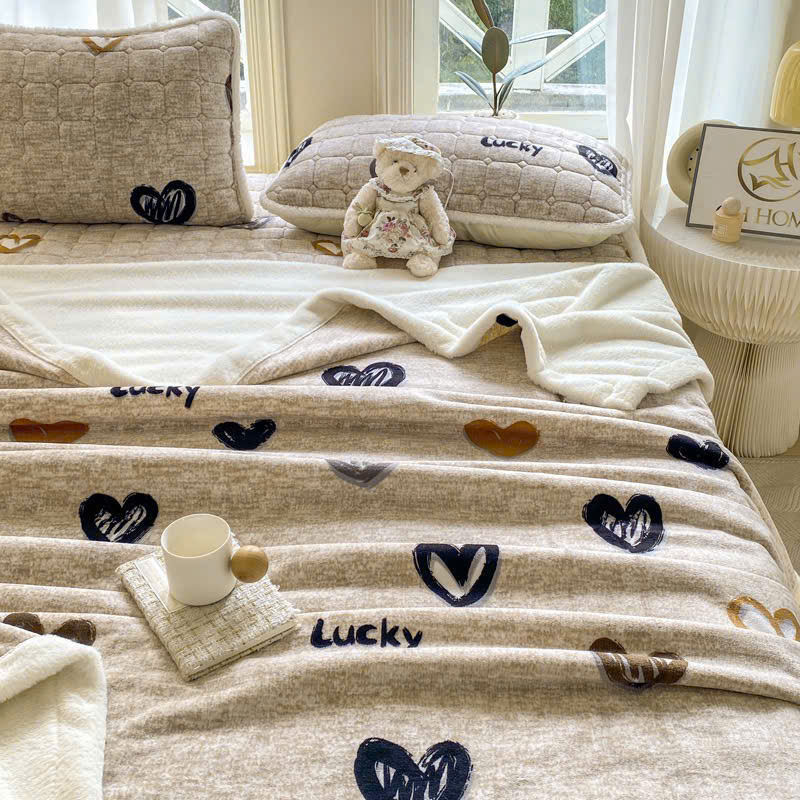 Thảm trải giường nỉ lông thỏ kèm chăn LIDACO mềm mịn ấm áp siêu tiện lợi với chun cài 4 góc