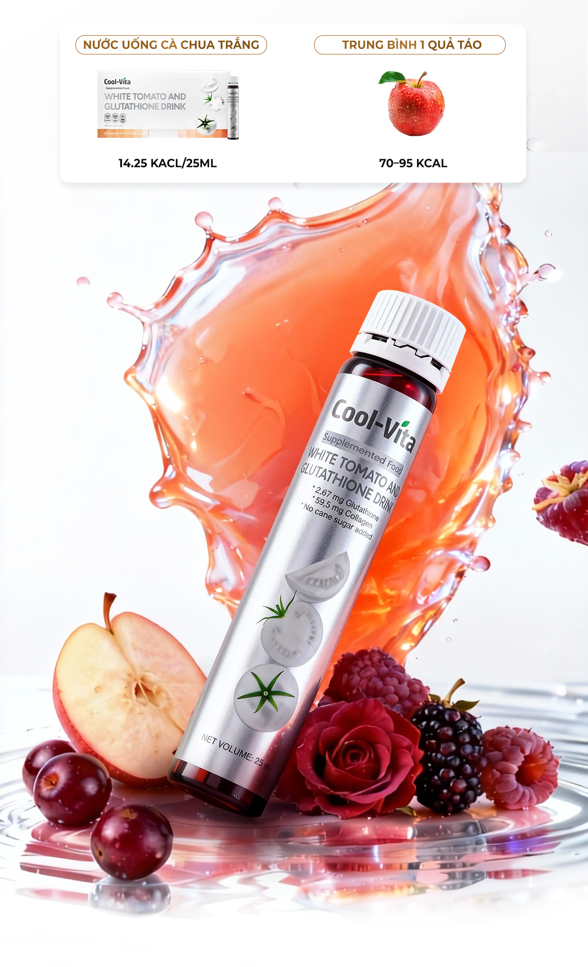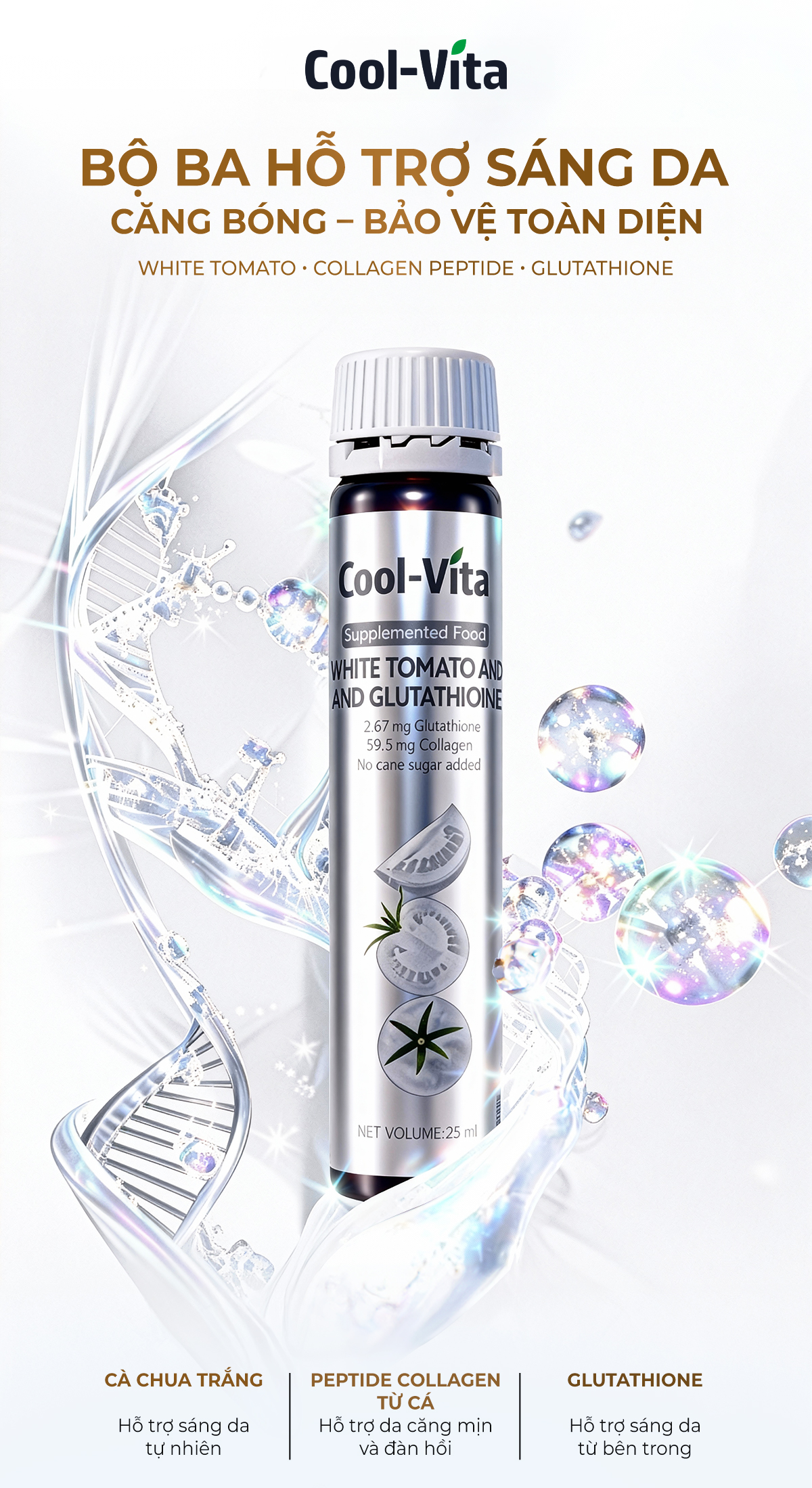 Đặc điểm vượt trội của Nước Uống Cà Chua Trắng Kết Hợp Collagen Peptide Glutathione Coolvita: