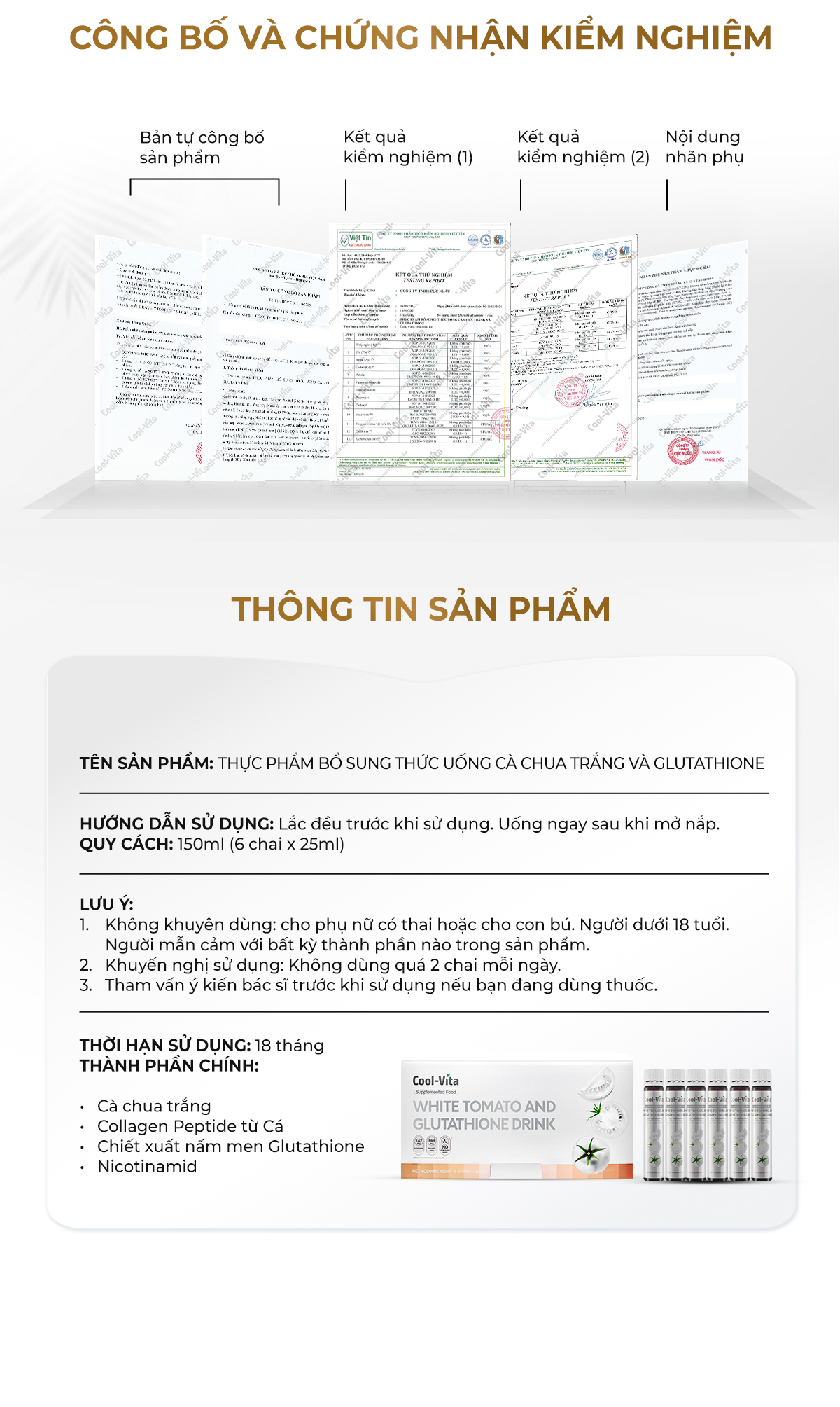 THỰC PHẨM BỔ SUNG: THỨC UỐNG CÀ CHUA TRẮNG VÀ GLUTATHIONE (Tên sản phẩm trên hồ sơ công bố)