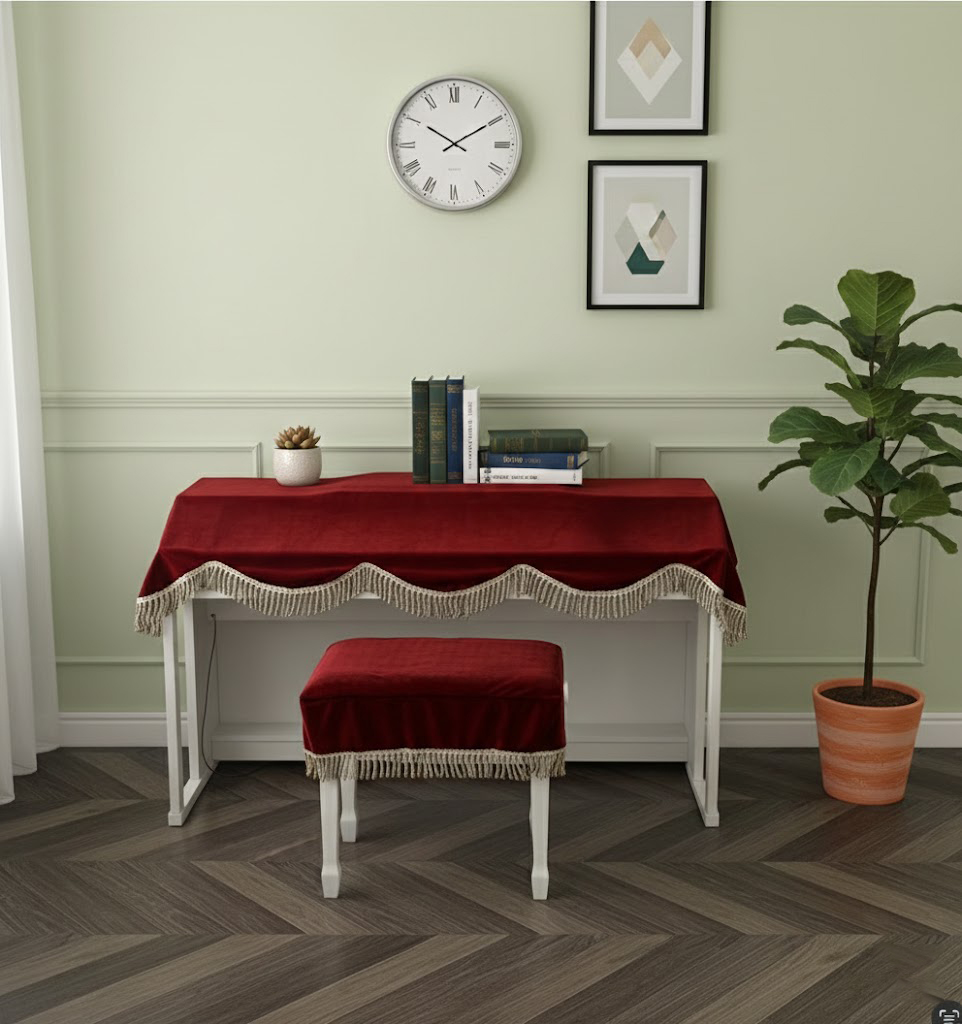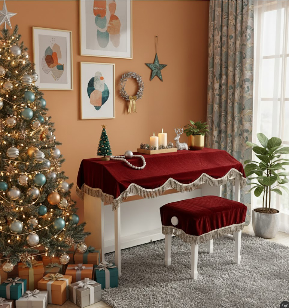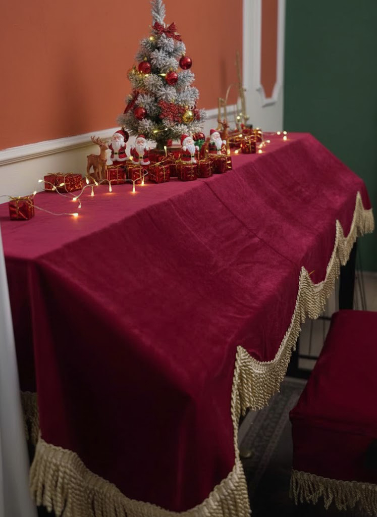 Khăn phủ đàn piano cơ đàn piano điện tử 88 phím nhung đỏ trang trí giáng sinh noel năm mới Tết - Hàng chính hãng