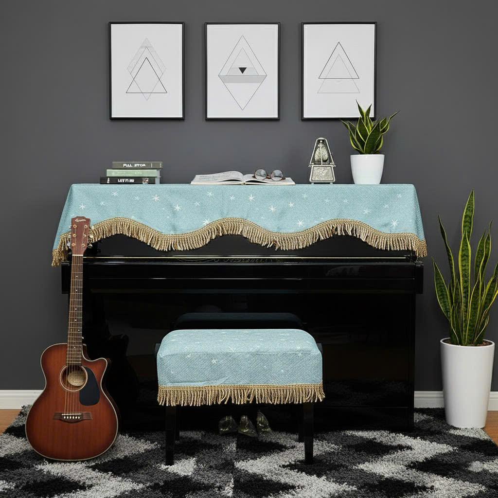 - Khi nhận hàng bạn nên ủi mặt trái sản phẩm để phẳng các nếp gấp do quá trình đóng gói, vận chuyển sau đó phủ lên đàn piano sẽ rất đẹp