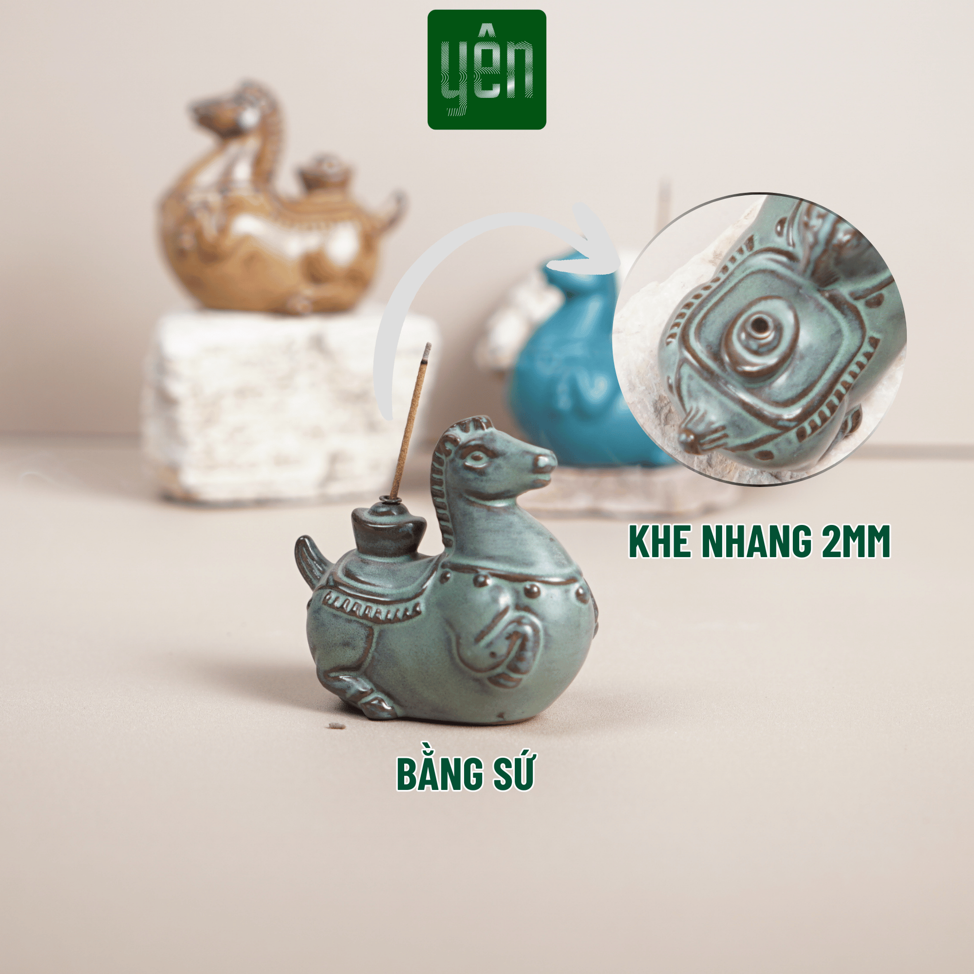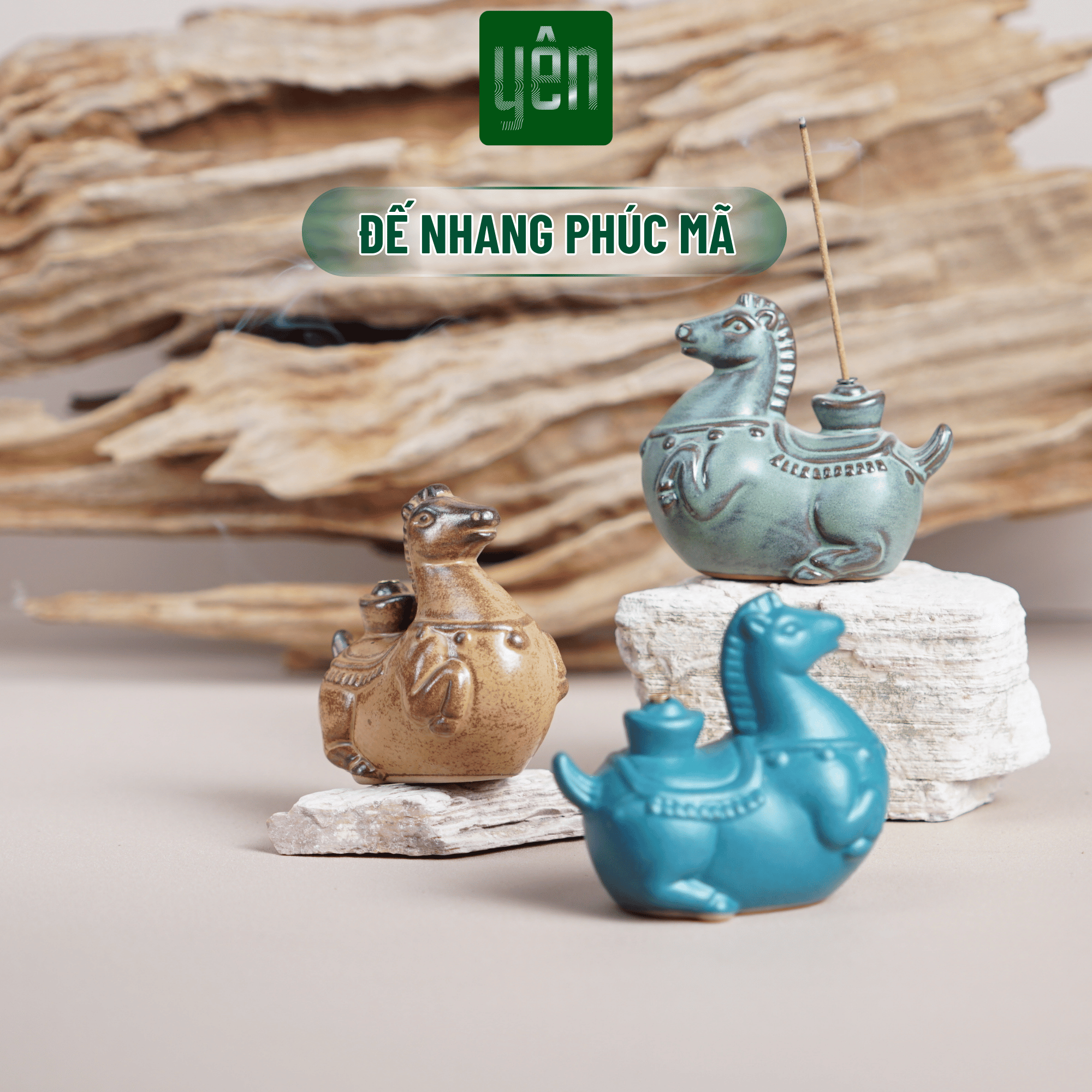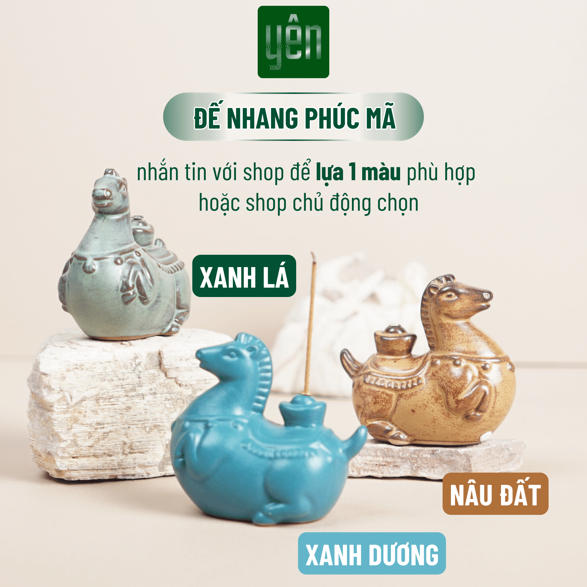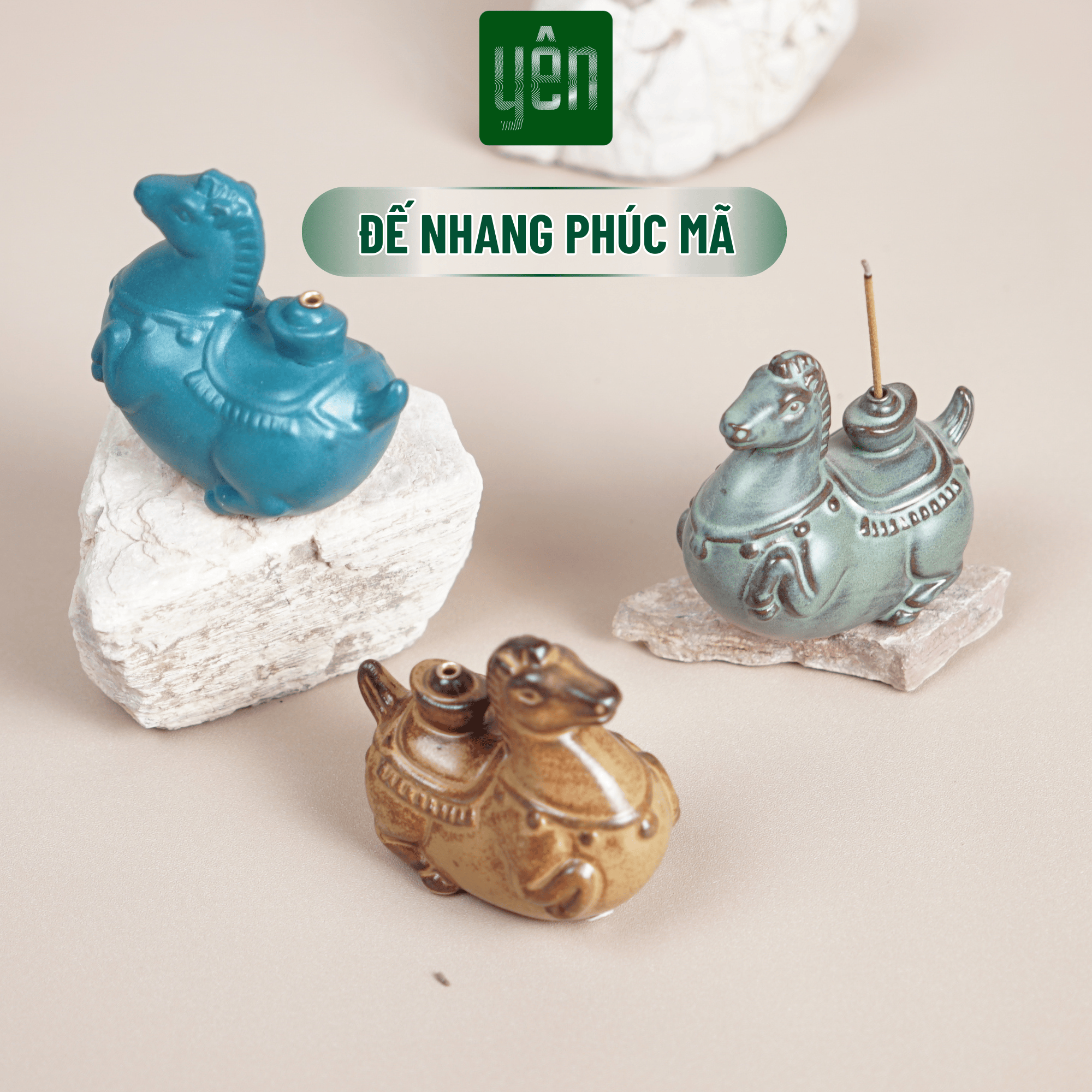 ông tin sản phẩm Đế Nhang Phúc Mã Yên Thảo Mộc Bằng Gốm Hình Ngựa Dùng Trang Trí
