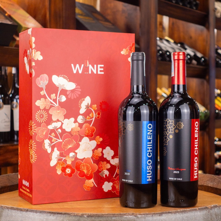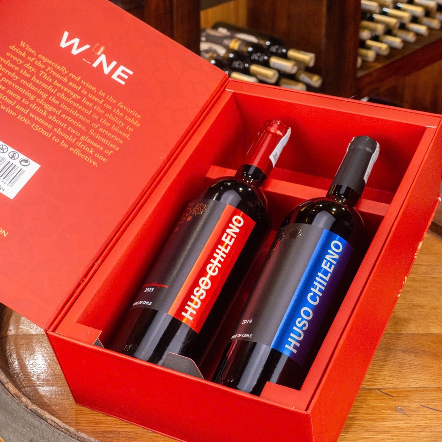 Giới thiệu Hộp wine đỏ 2 chai rượu vang Huso Chileno