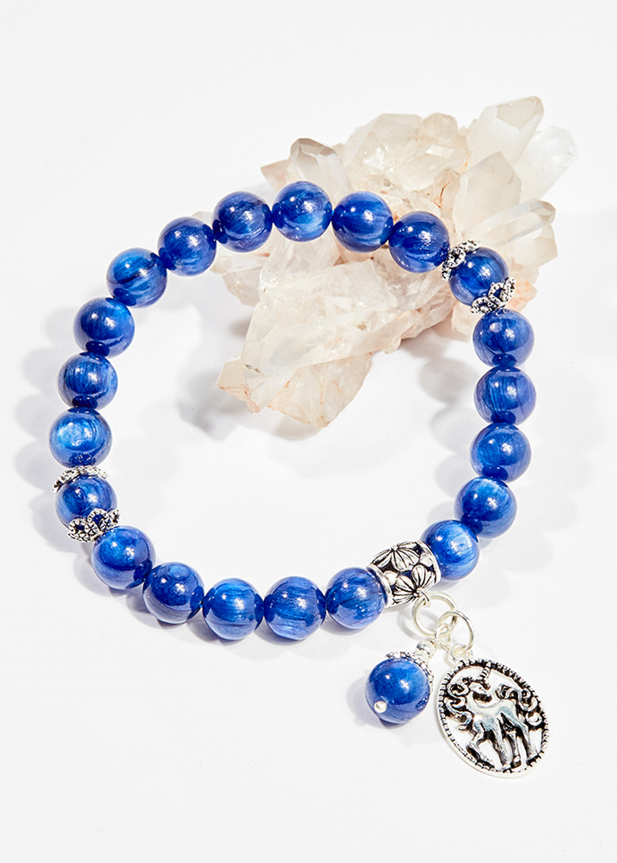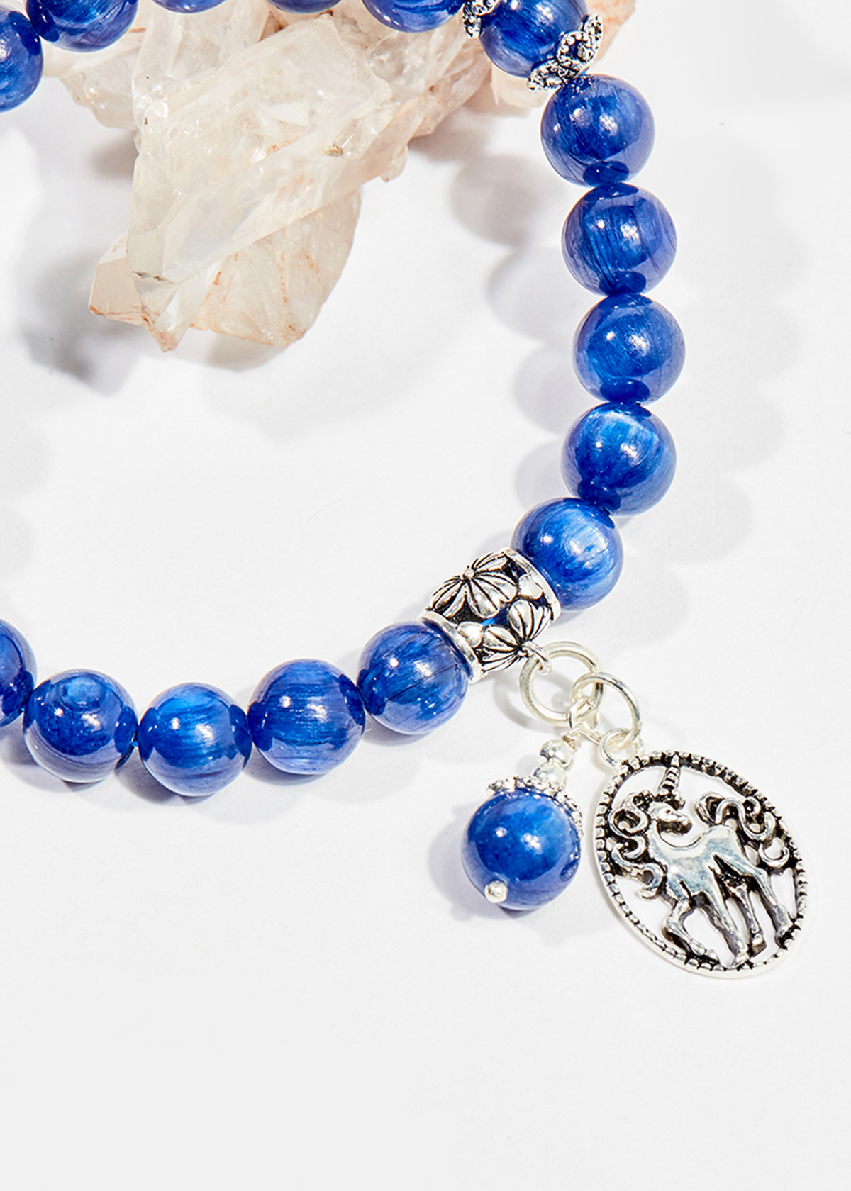 Vòng tay phong thủy nữ đá kyanite charm kỳ lân 8mm mệnh thủy , mộc - Ngọc Quý Gemstones