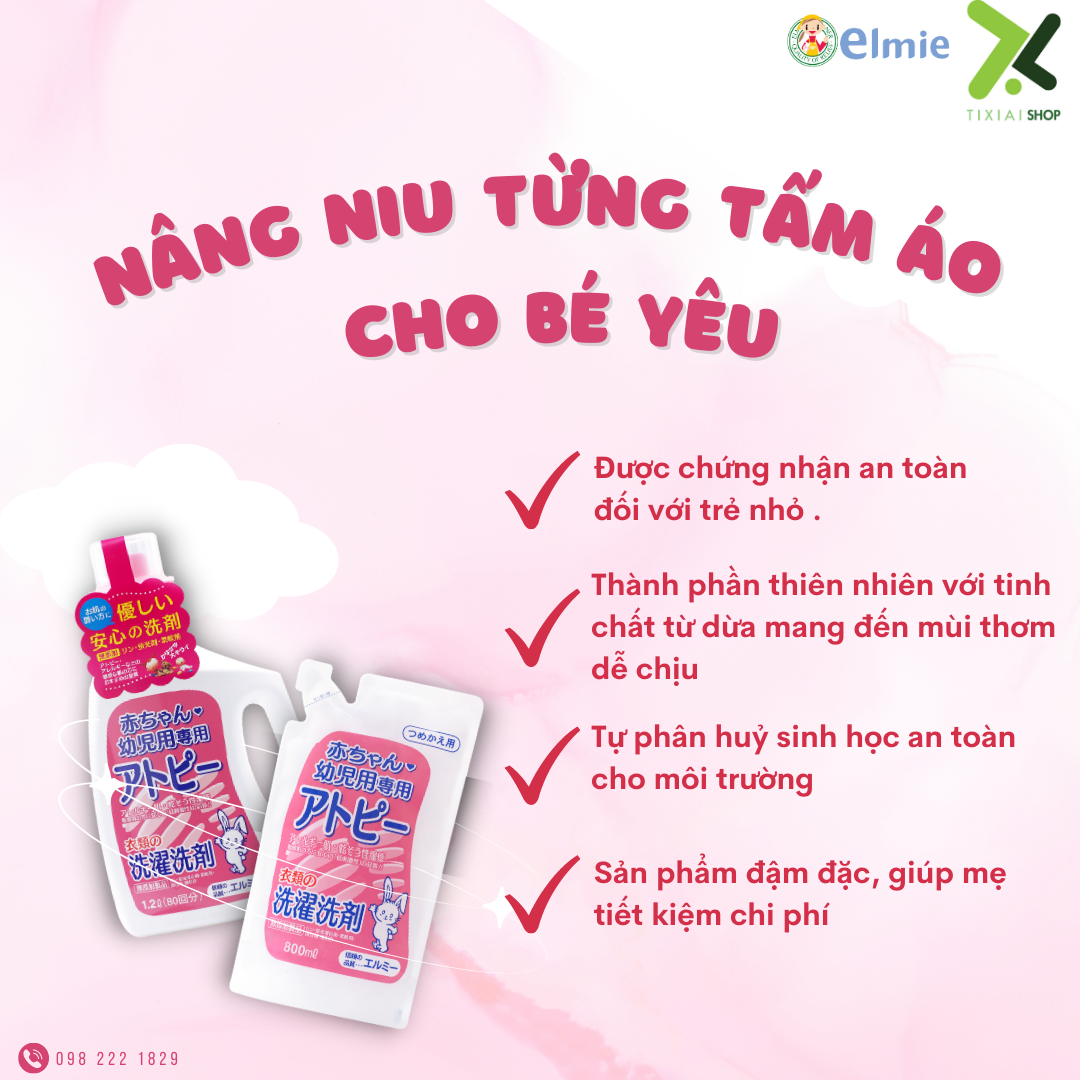NƯỚC GIẶT QUẦN ÁO ELMIE KHÔNG CHẤT PHỤ GIA BỘT GIẶT DÀNH CHO TRẺ SƠ SINH VÀ TRẺ NHỎ