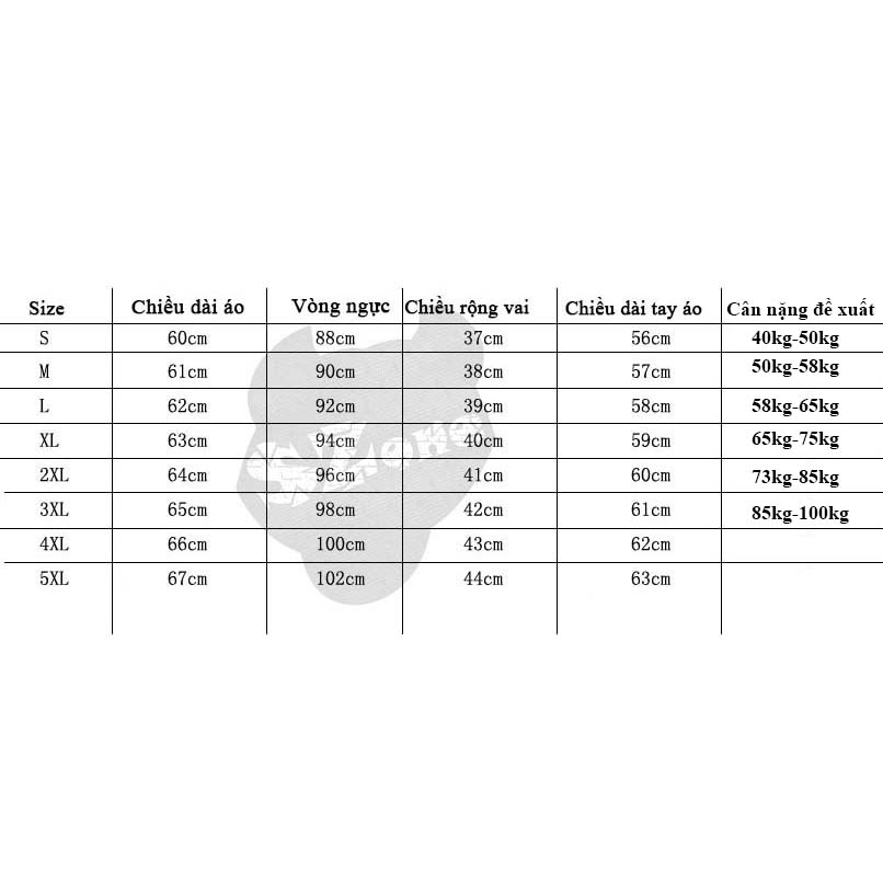 Kích thước: M - L - XL - 2XL - 3XL
