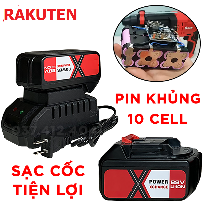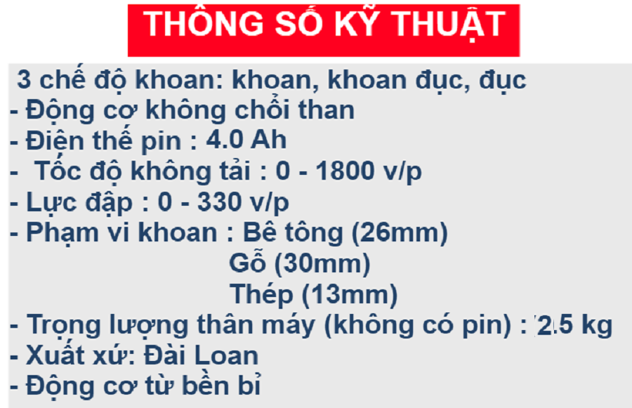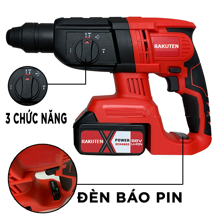 Máy khoan betong dùng pin Rakuten là dòng máy khoan đục betong dùng pin với 3 chức năng :khoan thường,khoan búa và đục.