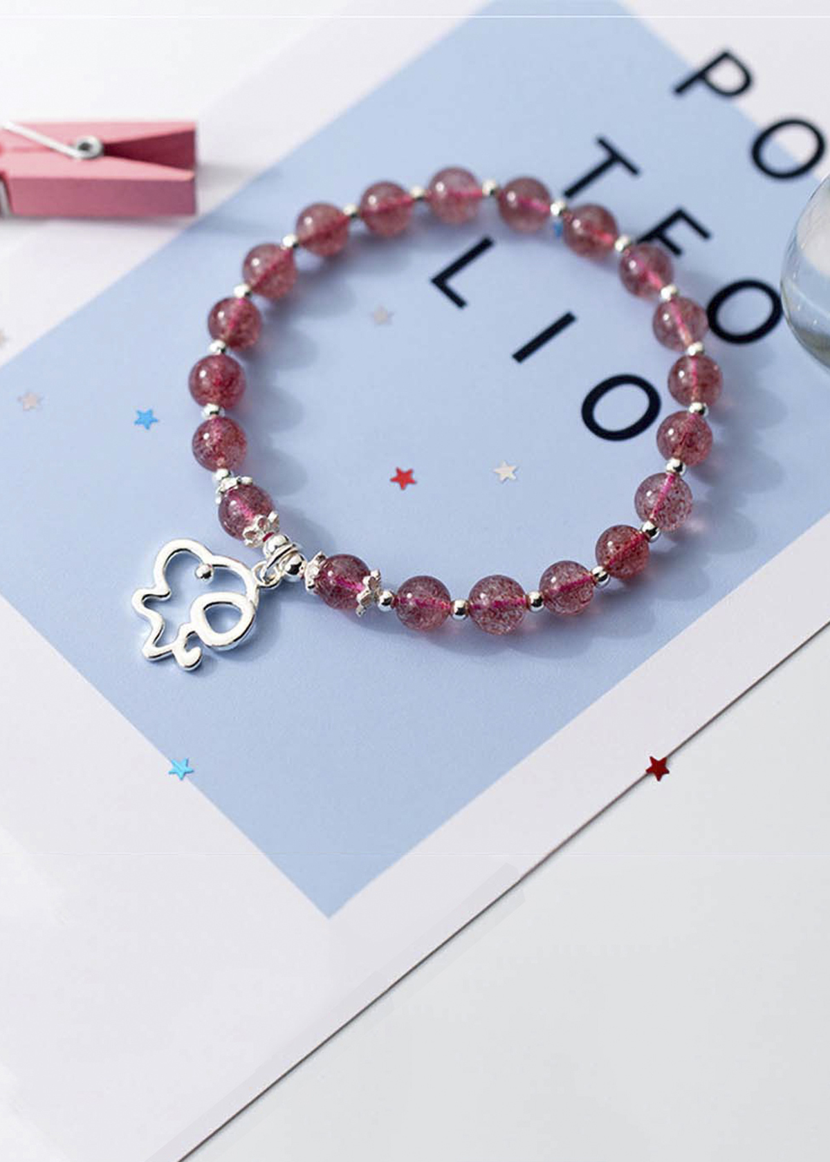 Giới thiệu Vòng tay đá thạch anh dâu phối charm cún con mệnh hỏa, thổ - Ngọc Quý Gemstones