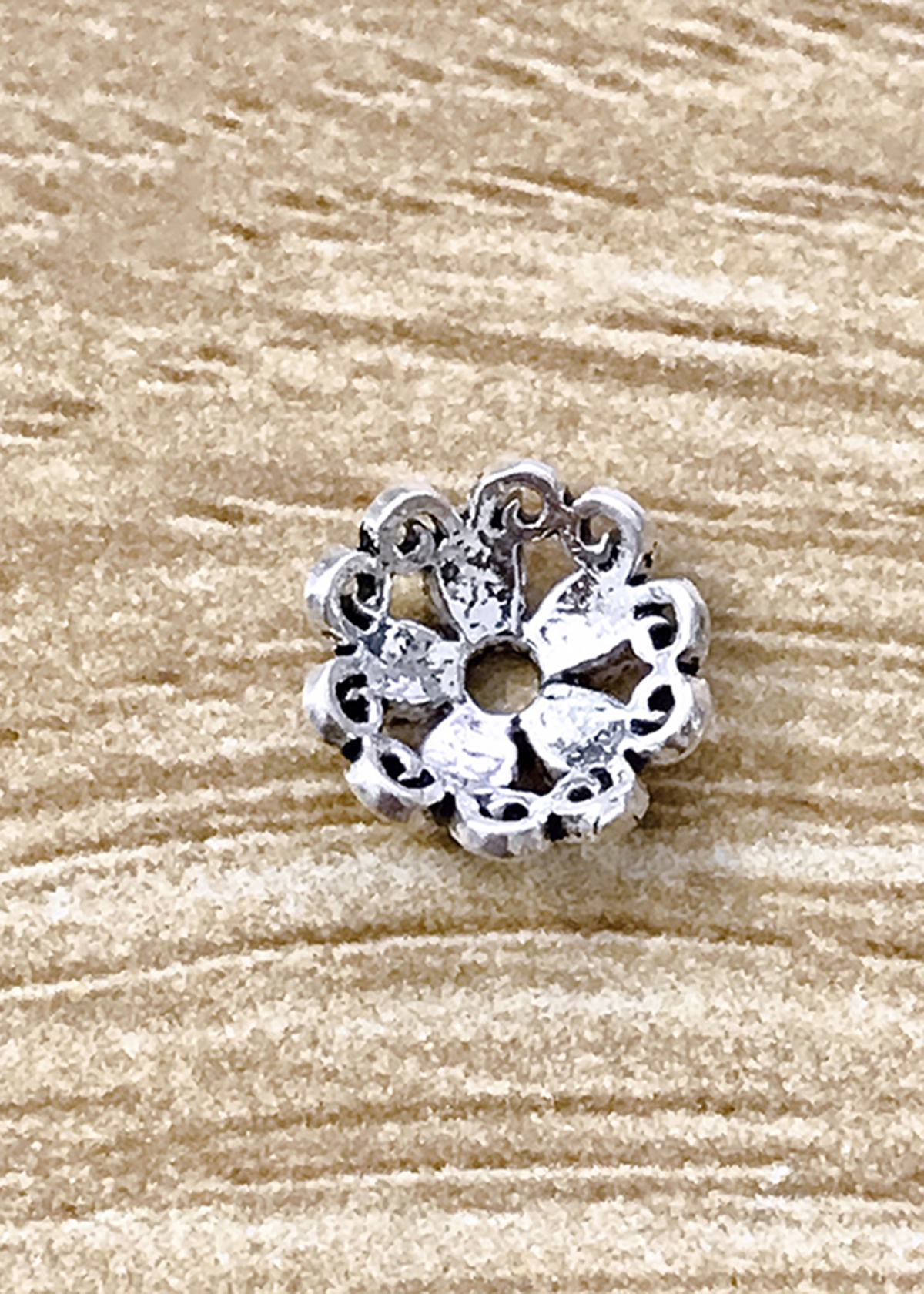 Combo 6 cái charm bạc chụp hạt, bọc hạt họa tiết hoa văn trái tim đôi - Ngọc Quý Gemstones