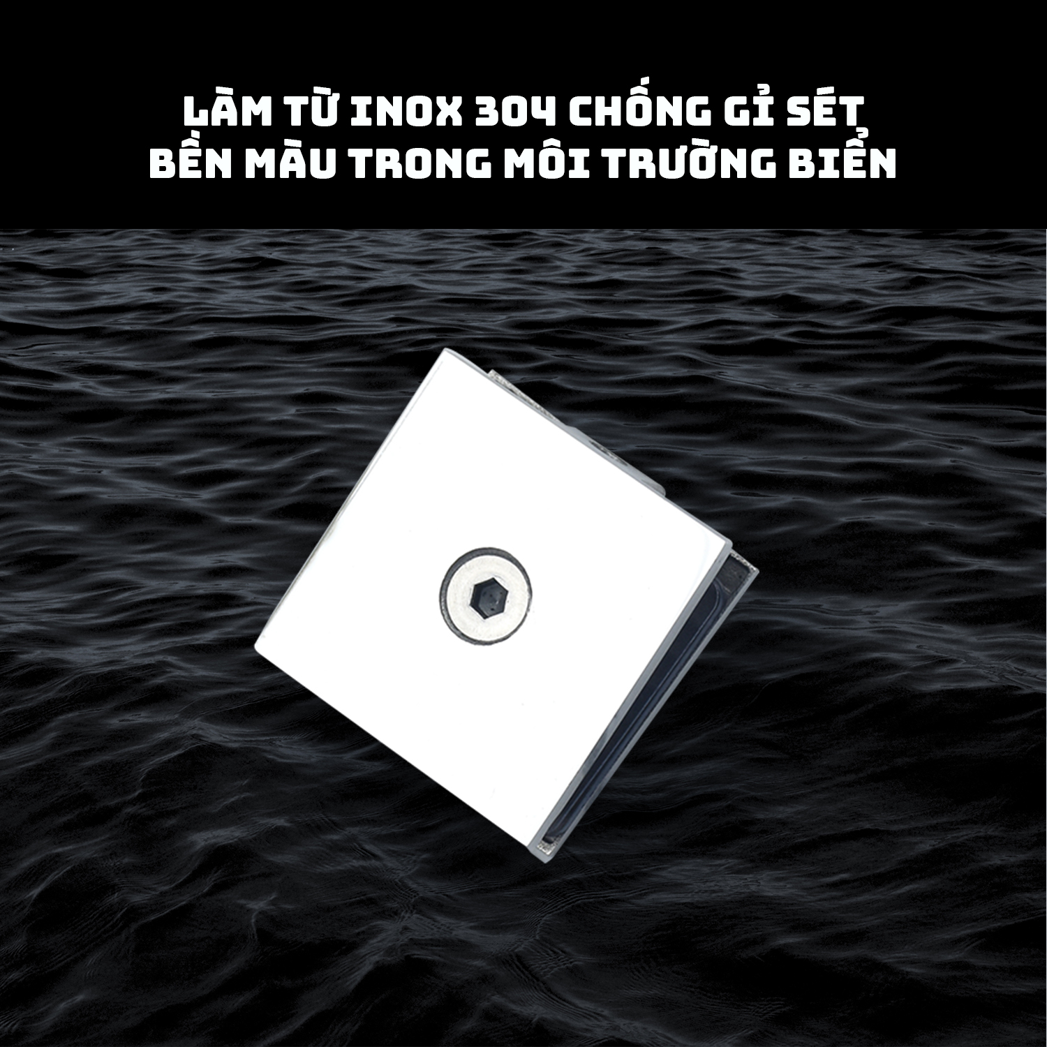Kẹp định vị kính 0 độ cho cabin tắm chất liệu inox 304 mặt gương cạnh vát Hiwin FC-2080 lắp ở chân vách kính