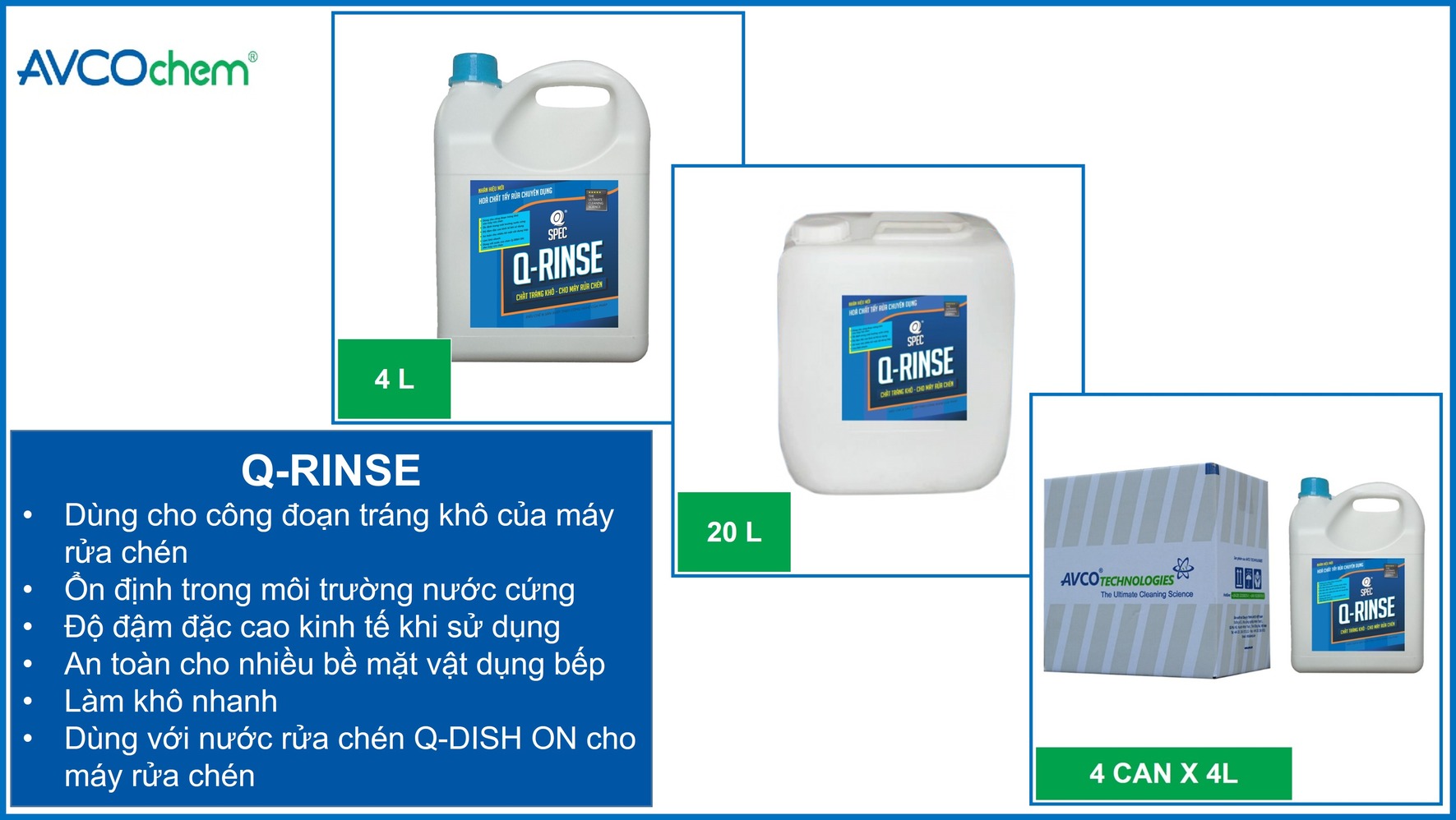 Mua Chất Tráng Khô Chén Dùng Cho Máy Rửa Chén AVCOChem - Siêu Tiết Kiệm - Q-RINSE - can 20 lít - Hàng Chính Hãng giá rẻ nhất ở đâu?Giới thiệu Chất Tráng Khô Chén Dùng Cho Máy Rửa Chén AVCOChem - Siêu Tiết Kiệm - Q-RINSE - can 20 lít - Hàng Chính Hãng