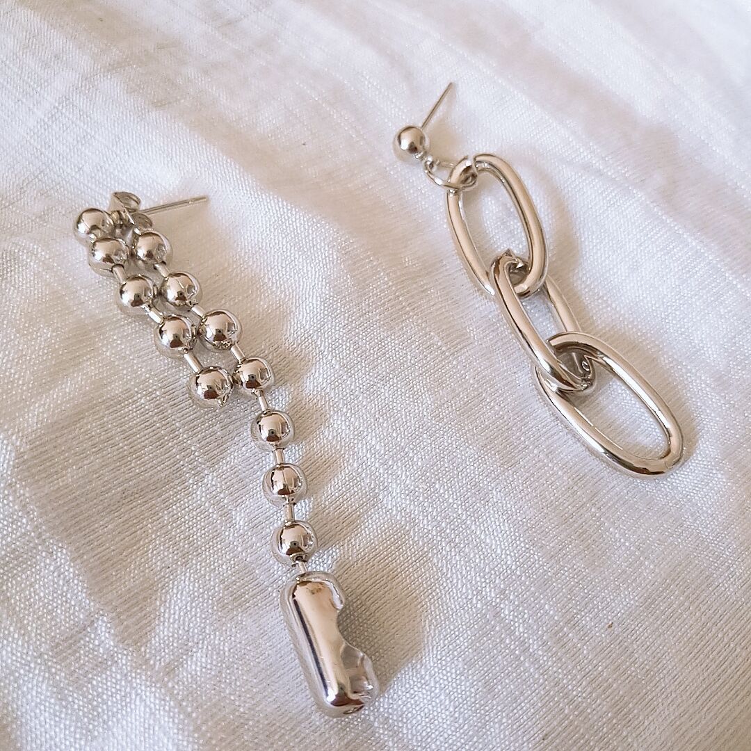 Bông tai gồm hai chiếc thiết kế khác biệt, một chiếc thả chuỗi hạt mini một chiếc thả xích mắt lớn. Bắt trend xu hướng thời trang unisex. Kiểu dáng táo bạo, mạnh mẽ dành cho các bạn trẻ yêu thích phong cách gothic, streetwear bụi bặm, độc lạ. Dành cho mọi giới tính. Chất liệu Titan bền đẹp, không gây kích ứng. Có thể làm trang sức cá nhân và làm quà tặng. Được nhiều idol ưa chuộng. Sản phẩm bán một đôi