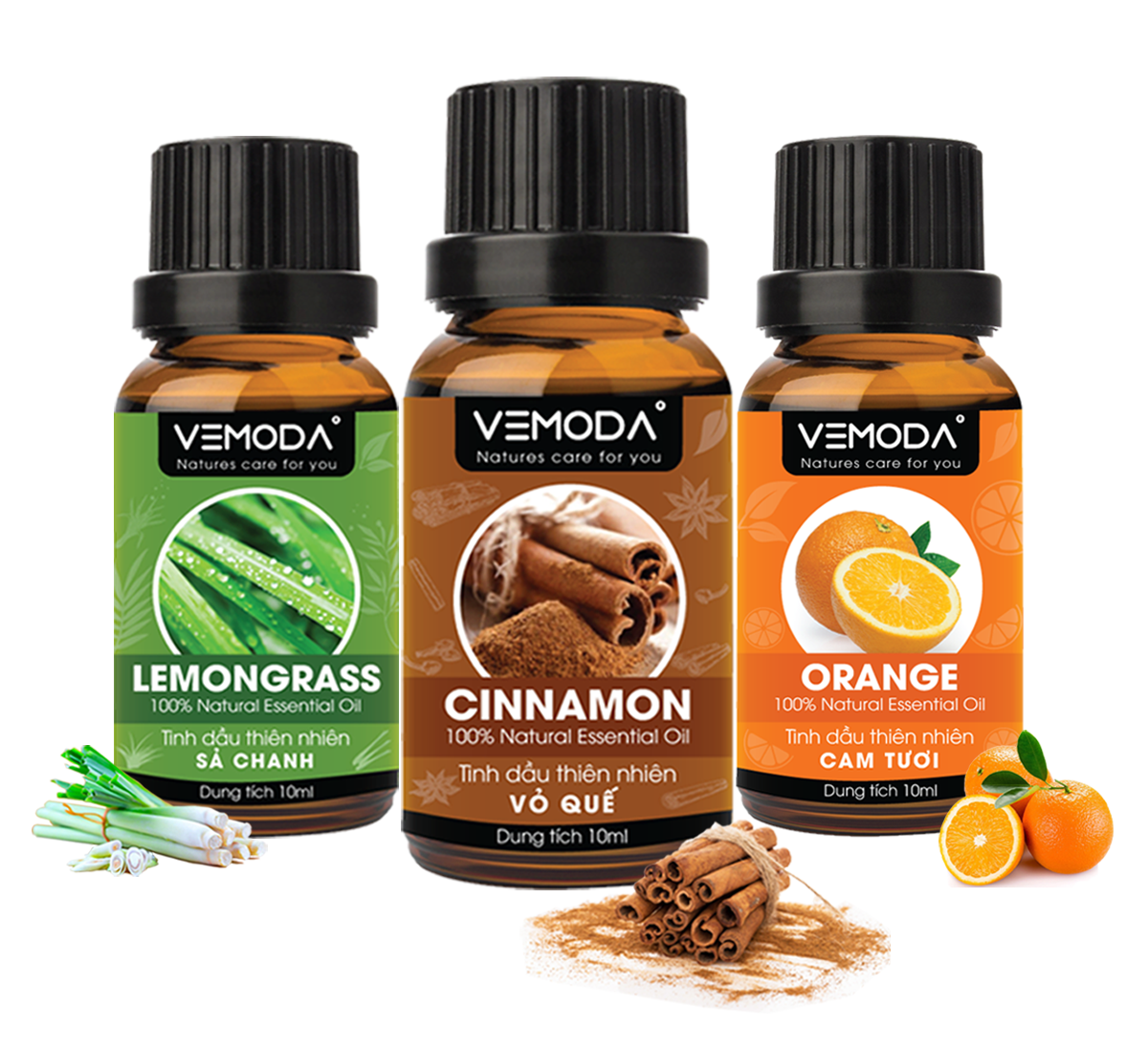 Tinh dầu Xông phòng cao cấp Vemoda gồm Combo 3 lọ tinh dầu: tinh dầu Sả chanh (10ml) + tinh dầu Vỏ quế (10ml) + tinh dầu Cam tươi (10ml) Vemoda
