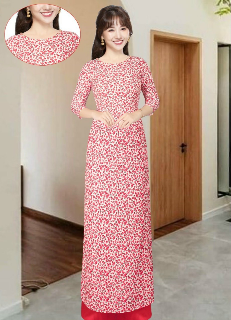 Giới thiệu Áo dài nữ trắng đỏ họa tiết cherry