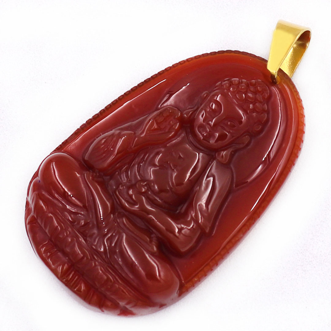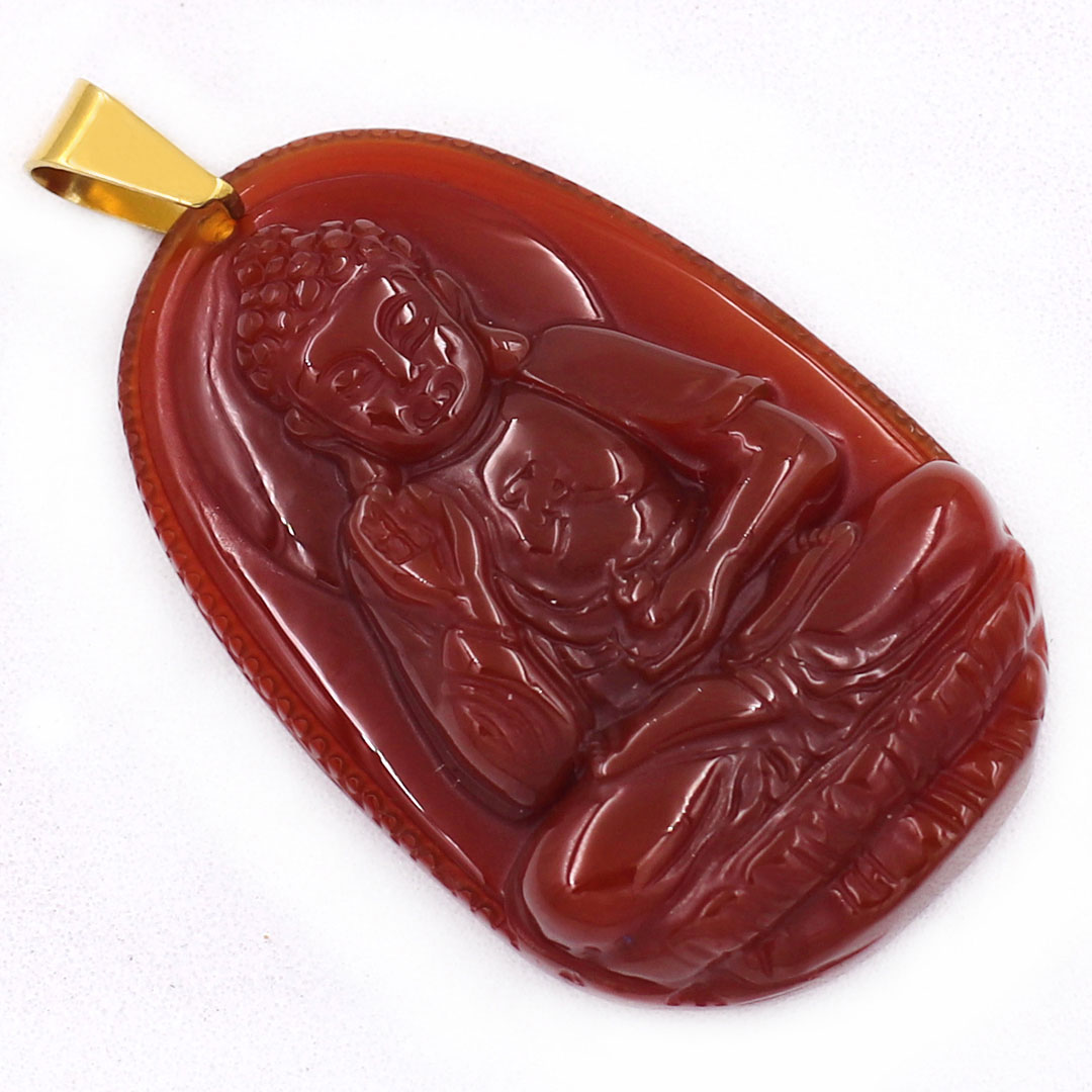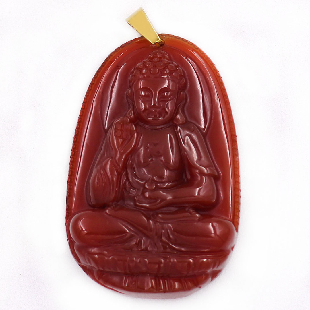 Mặt Phật A Di Đà thạch anh đỏ 3.6cm kèm hộp nhung - Phật bản mệnh tuổi Tuất, Hợi - Mặt size nhỏ