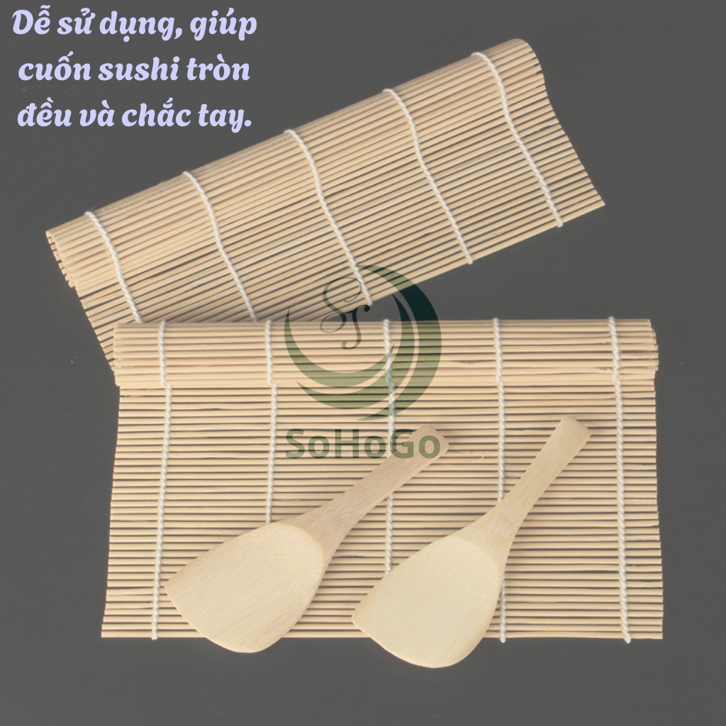 Bộ dụng cụ cuộn sushi bằng tre-Chiếu cuộn sushi Nhật Bản– Thảm tre cuộn sushi- Bộ làm sushi tại nhà mini- Bộ cuộn sushi kèm muỗng gỗ- Dụng cụ làm sushi handmade
