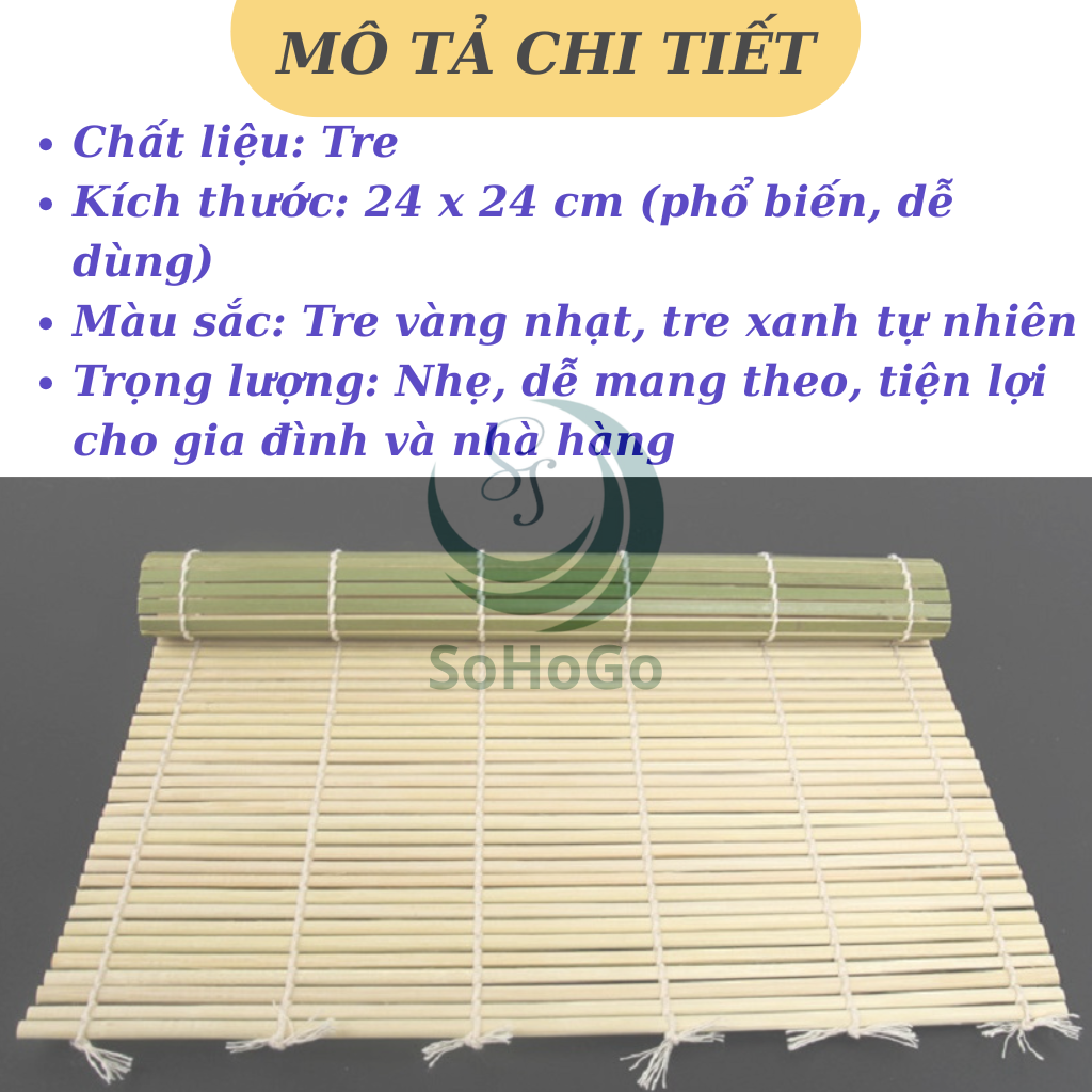 - Chiếu cuộn sushi (Makisu): Dễ sử dụng, giúp cuộn sushi chặt tay và đẹp mắt
