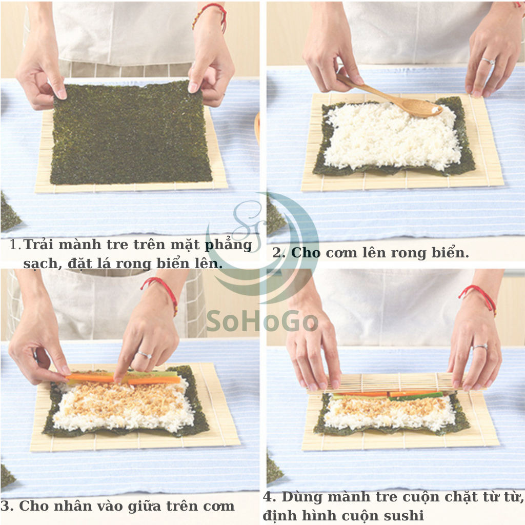 Dưới đây là hướng dẫn cách dùng chiếu cuộn sushi cực đơn giản, dễ hiểu – phù hợp để đưa vào bài đăng, video, hoặc in trên bao bì: