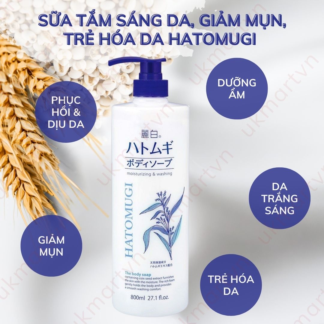 Đó chính là Sữa tắm dưỡng ẩm trắng da Hatomugi Moisturizing Washing 800ml - một trong những dòng chăm sóc da được yêu thích nhất tại Nhật và nhiều quốc gia châu Á.