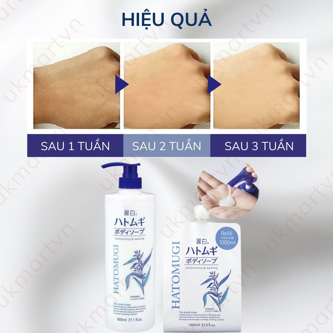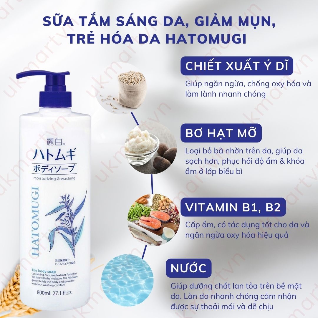 Giới thiệu Sữa Tắm Trắng Da Giữ Ẩm Hatomugi Nhật Bản 800ml