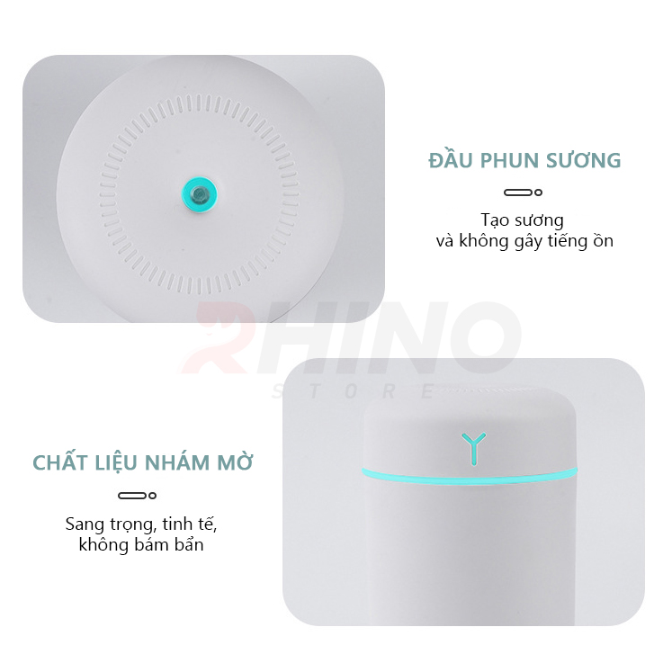 Máy phun sương xông tinh dầu tạo ẩm Rhino H901 dung tích 420ml, nhỏ gọn, không gây tiếng ồn, tích hợp đèn ngủ RGB nhiều màu, có chế độ tự ngắt - Hàng chính hãng