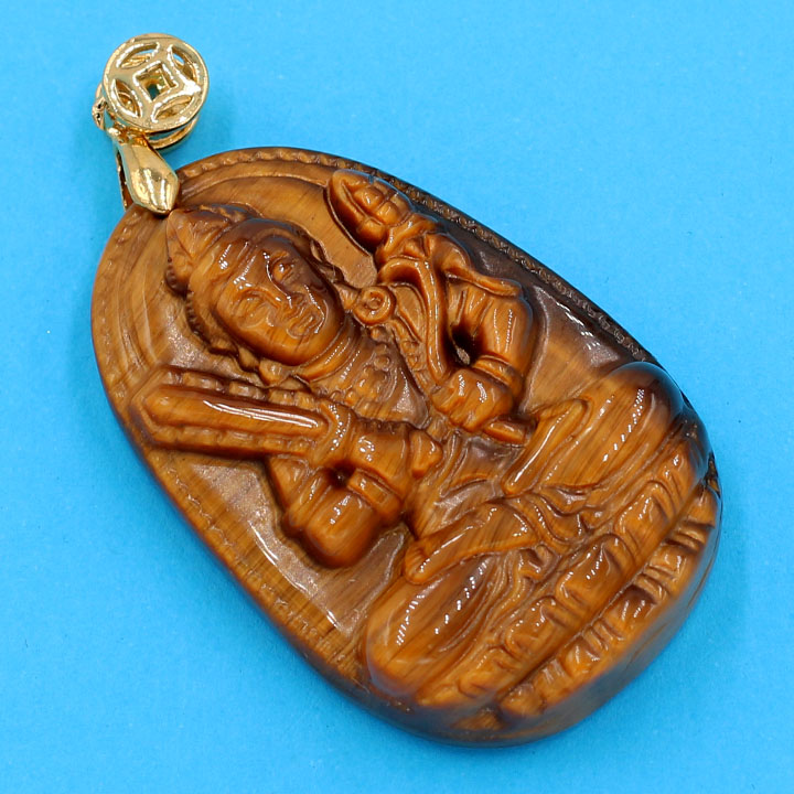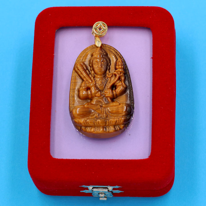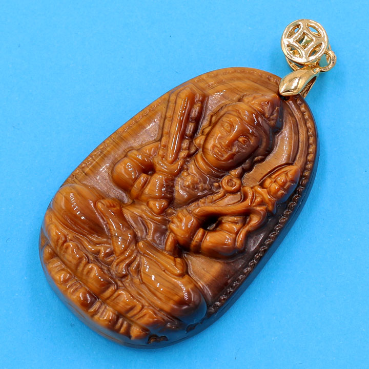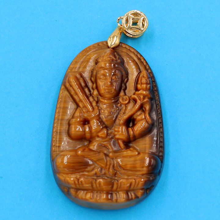 Giới thiệu Mặt dây chuyền Phật Hư Không Tạng bồ tát - đá mắt hổ 5cm - kèm hộp nhung - tuổi Sửu, Dần
