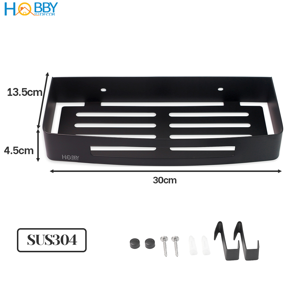 Kệ chữ nhật phòng tắm màu đen Inox 304 gắn tường Hobby Home Decor KCN3