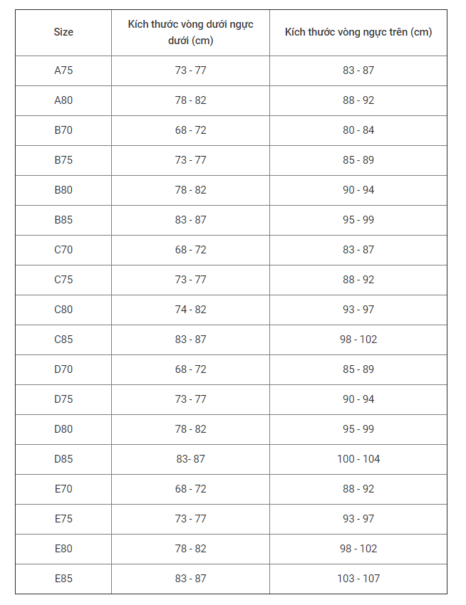 Hướng dẫn chọn Size: