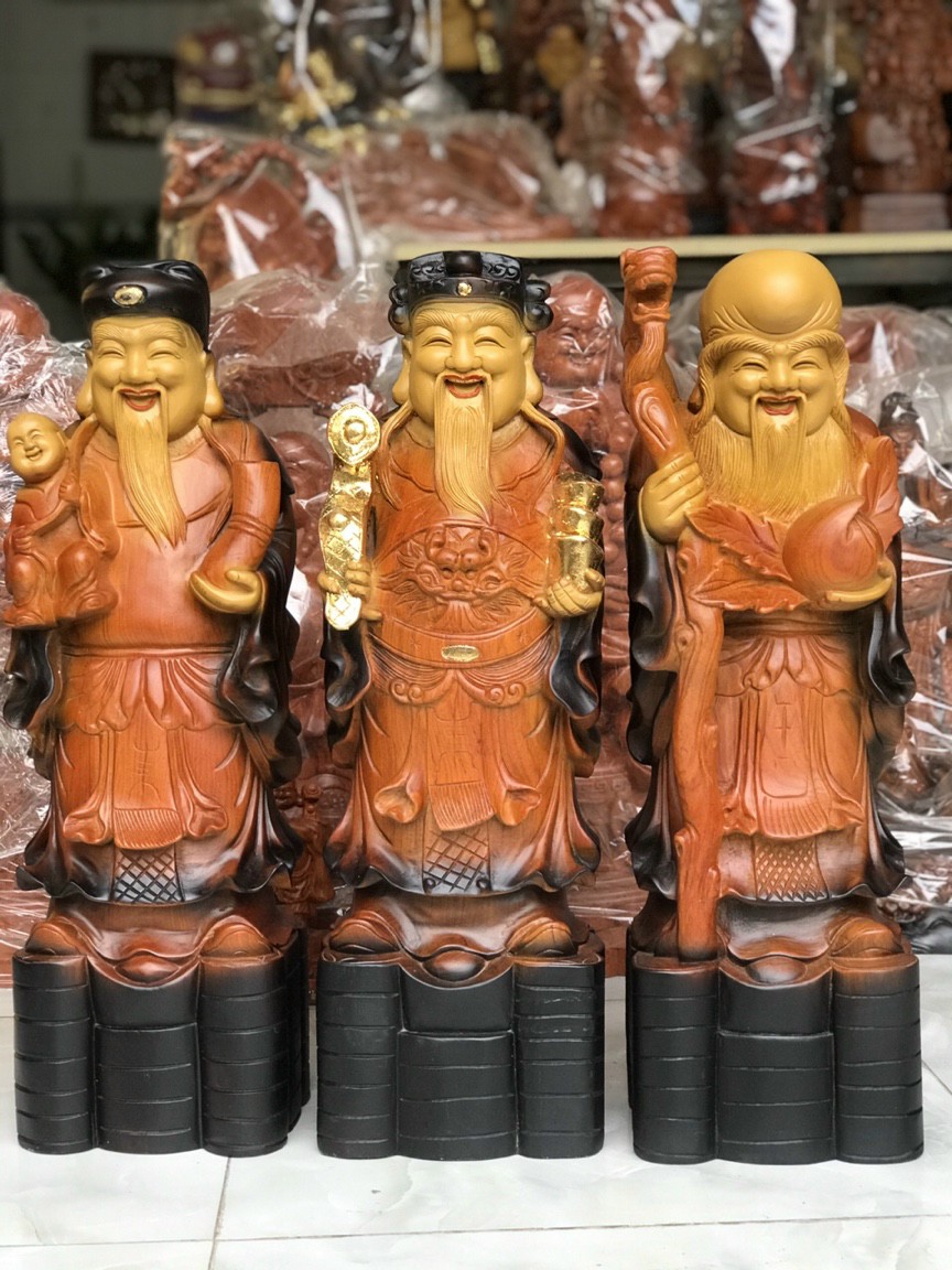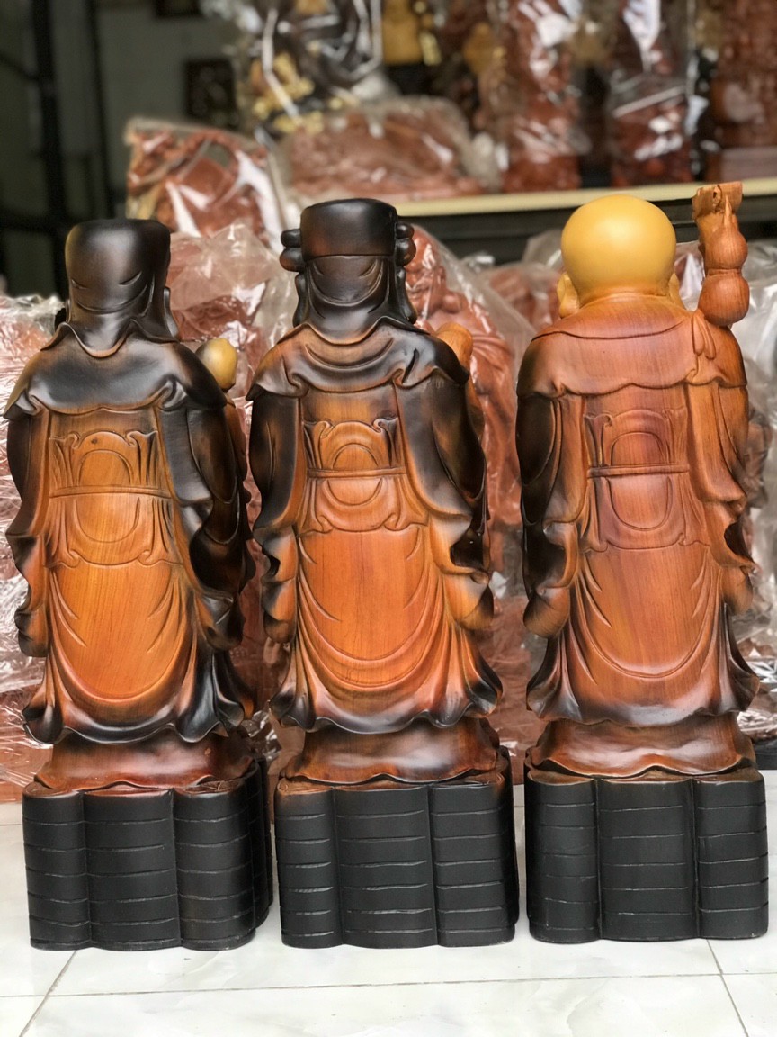 _ Bộ tượng phật tam đa phúc lộc thọ được trạm khắc tỉ mỉ tinh sảo kỳ công .Đi hầu hết tất cả mọi chi tiết góc ngách nội dung hoa văn của tượng đều được ngọt tỉa chỉnh sửa hoàn toàn bằng tay thủ công .Đồng thời bộ tam đa ,được kiểm định kỹ lưỡng như cho vào thẩm sấy cho gỗ khô kiệt .Mục đích trống dập nứt vênh mo mối mọt ,Rồi cho vào đánh giấy giáp nhiều lần cho sạch sẽ ,sờ mát lạnh ,Sonv cho vào phun lót làm bóng mờ lể giữ lại mầu sắc vân gỗ tự nhiên ,Cũng nhưTô làm mầu giả cổ như ảnh trên ,Bộ tam đa phúc lộc thọ được làm và hoàn thiện do bàn tay khối óc tài hoa ,Từ những người thợ giàu kinh nghiệm cũng như tay nghề cao trong làng nghề truyền thống ,Chính vì thế bộ tam đa ,phúc lộc thọ đã đáp ứng đầy đủ những tiêu trí ( Đẹp bền rẻ ) Thẩm mỹ nghệ thuật với chất lượng tuyệt vời