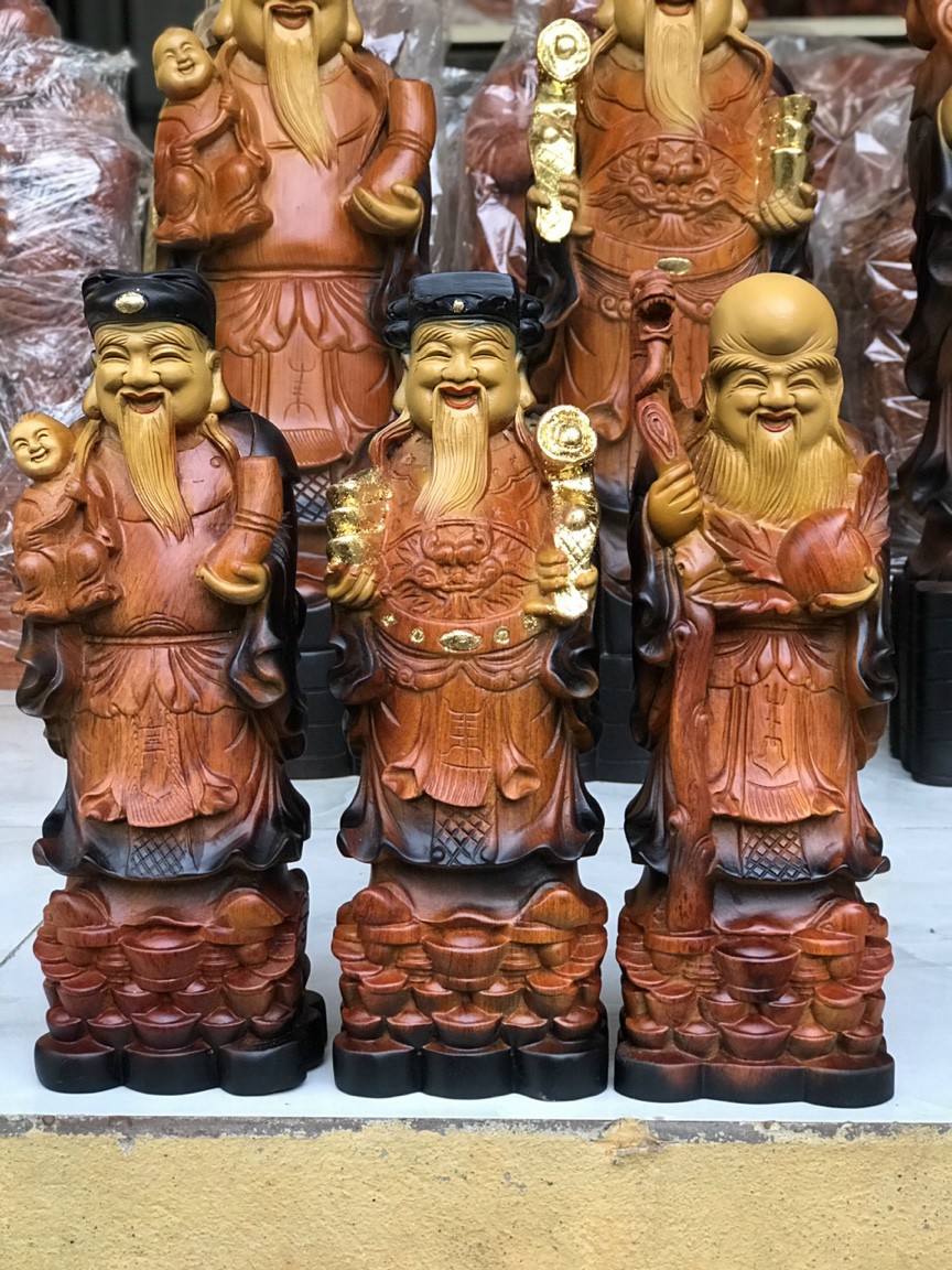 Giới thiệu Bộ tượng phật tam đa phúc lộc thọ bằng gỗ hương đá tô làm mầu giả cổ kt cao 30×12×8cm