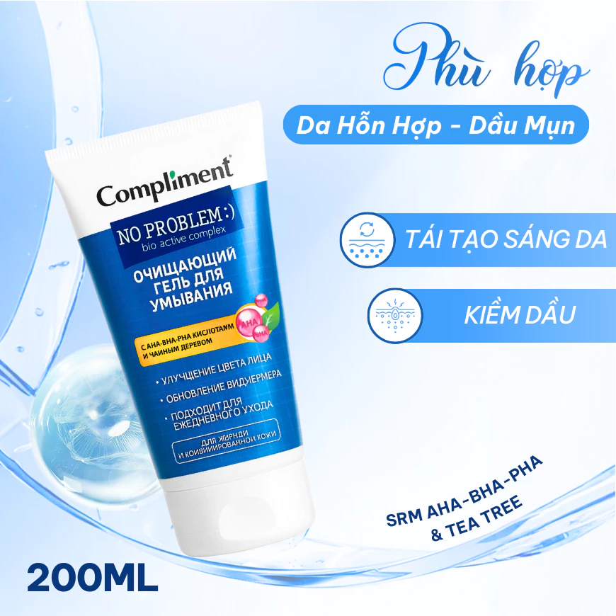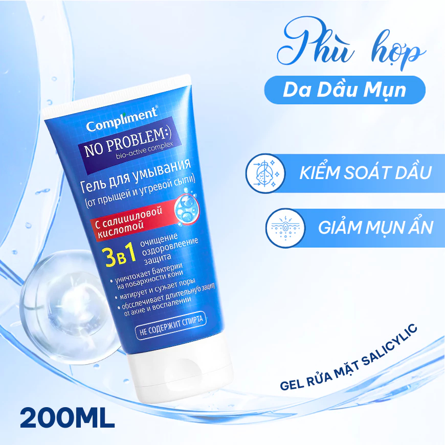 Gel rửa mặt BHA Compliment No Problem làm sạch sâu, giảm viêm & mụn 200ml