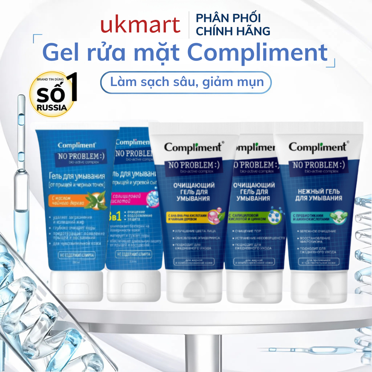 Gel Rửa Mặt Giảm Mụn Compliment No Problem 200ml