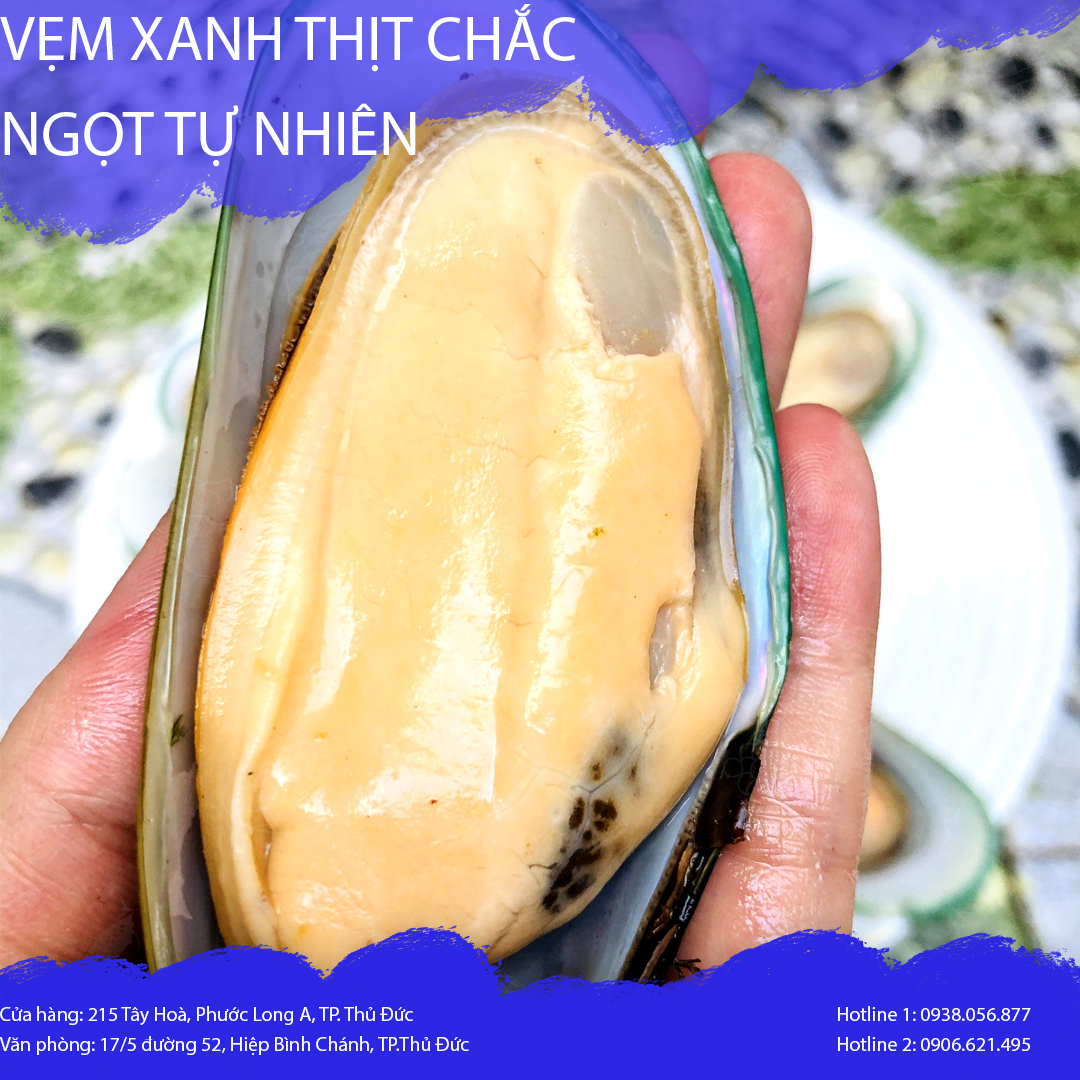 - Vẹm xanh New Zealand là loại hải sản sinh sống tại đảo Nam Stewat vùng biển phía nam của New Zealand, đây là một hòn đảo sạch, trong lành và còn giữ được nét nguyên sơ. Khác với những loại vẹm xanh khác vẹm xanh Newzealand được nuôi trồng theo quy chuẩn sạch từ giống đến thu hoạch. Quá trình nuôi trồng kiểm soát chặt chẽ về tất cả mọi thứ bao gồm thức ăn, môi trường, điều kiện sống, chế độ chăm sóc.