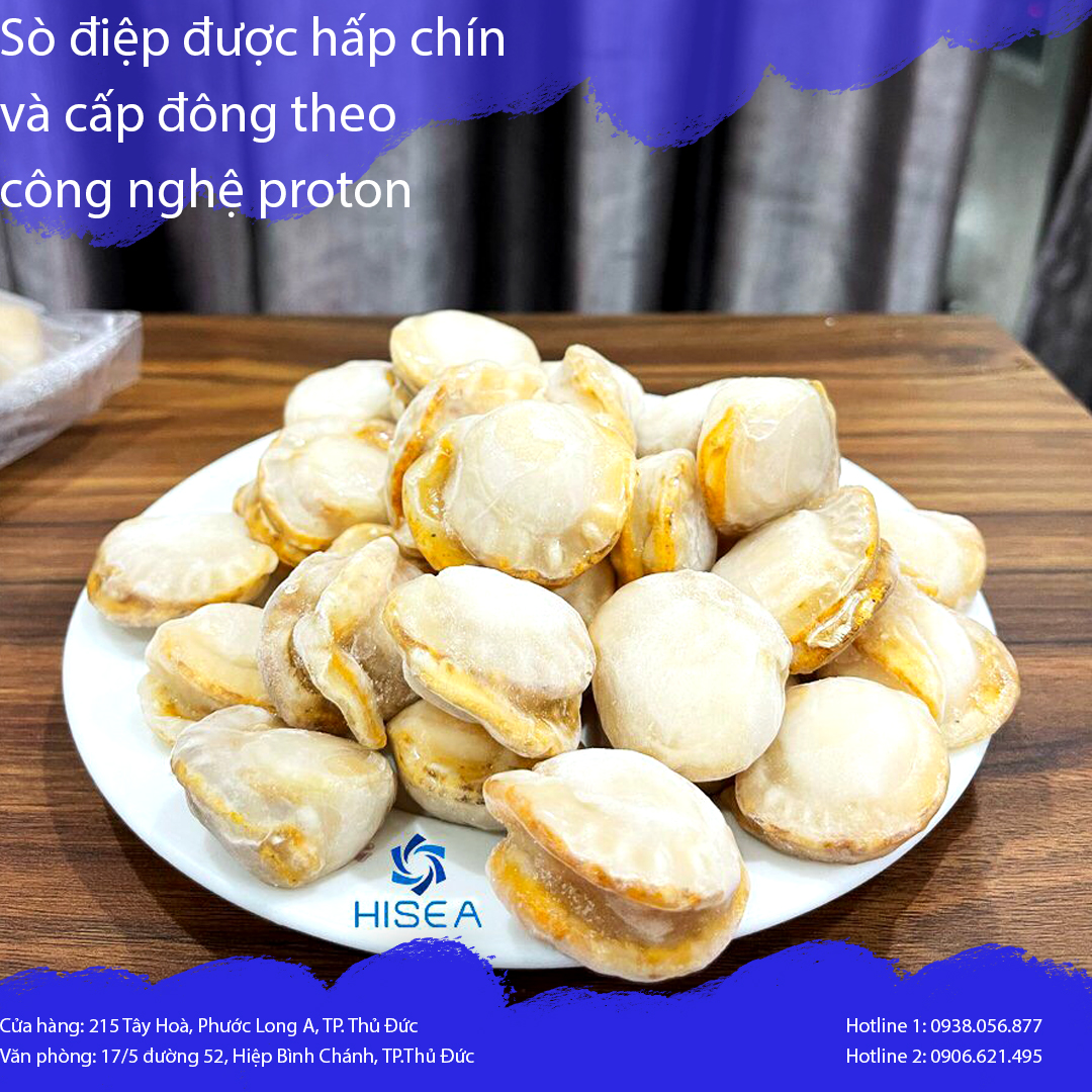 - Sau khi thu hoạch, sò điệp Nhật ngay lập tức được làm vệ sinh sạch cát hoàn toàn bằng nước biển tự nhiên. Tiếp đó sẽ được phân loại và hấp chính sau đó tiến hành cấp đông theo công nghệ proton tiên tiến nhất Nhật Bản.