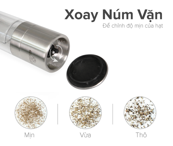 - Dụng cụ xay tiêu 2 trong 1 Benchusch nhanh chóng nghiền nhỏ tiêu, muối cùng các loại thảo mộc… góp phần mang đến sự hoàn hảo cho mỗi món ăn với hương vị tươi nguyên từ các loại gia vị mà bạn yêu thích.